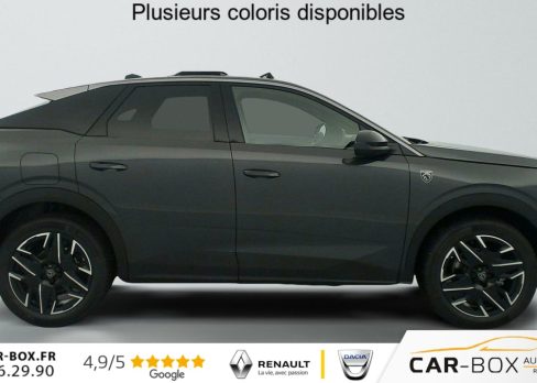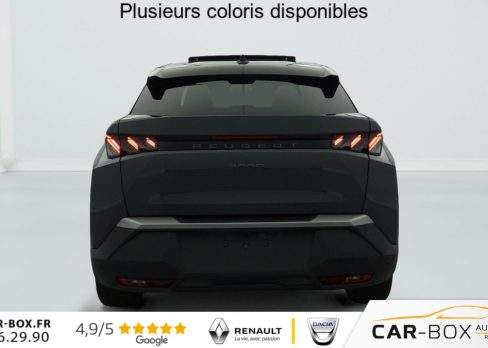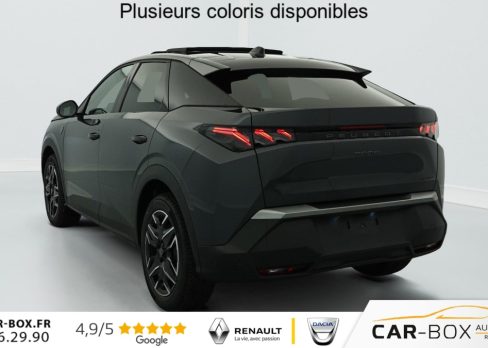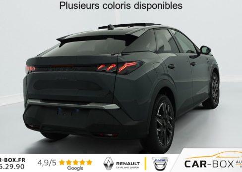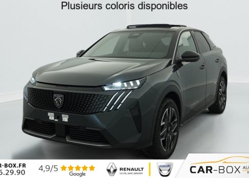Hors frais de dossierHybrid 145 e-DCS6 GT, hybride, blanc, 26/08/2025, Grip control 4 modes (standard, boue, neige et sable) : option incluse (valeur : 300 Eur TTC), Pare-brise chauffant : option incluse (valeur : 100 Eur TTC), Frein de stationnement électrique, ESP avec aide au démarrage en pente, ABS, Détection de sous-gonflage indirecte, Commutation automatique des feux de route, Essuie-vitre AV à déclenchement automatique, Habitacle et ciel de pavillon Noir, Direction assistée, Accoudoir central, Teintes métallisées : option incluse (valeur : 1 200 Eur TTC), 6 HP (2 tweeters et 2 woofers à l’AV et 2 larges bandes à l’AR), Rétroviseurs extérieurs dégivrants avec réglage et rabattement électriques, éclairage de seuil, Allumage automatique des phares, Hayon motorisé avec accès mains libres, Pédalier et repose pied aluminium, Pack Safety Plus : Alerte attention conducteur Régulateur / Limiteur de vitesse Reconnaissance étendue des panneaux de signalisation et préconisation de vitesse Alerte active de franchissement involontaire de ligne et bas côté Freinage d’urgence automatique avec alerte risque de collision pilotée par caméra et radar, Plancher de coffre modulable 2 positions, Fixations ISOFIX et Top Tether aux places latérales AR, 4 poignées de maintien rétractables (2 à l’AV et 2 à l’AR), Volant chauffant, Sièges AV chauffants, Drive Assist – Régulateur de vitesse adaptatif avec fonction Stop & Go, Pack Hi-Fi Focal : Vitres latérales AV feuilletées acoustiques Système Hi Fi Premium FOCAL 10 HP (4 tweeters, 4 woofers, 1 voie centrale, 1 subwoofer) : option incluse (valeur : 850 Eur TTC), PEUGEOT i-Toggles virtuels avec 10 raccourcis personnalisables, PEUGEOT i-Connect Advanced Navigation 3D connectée, 4 prises USB: 1 prise USB C (Data & charge) et 1 prise USB C (Charge) à l’AV, 2 prises USB C (Charge) à l’AR, Jantes alliage 19" diamantées BREDA Noir Orbital, vernis brillant, 6 airbags: frontaux conducteur et passager auto-adaptatifs (passager neutralisable par clé), latéraux conducteur et passager AV (thorax et bassin), rideaux aux places AV et AR (tête et thorax), Feux diurnes 3 griffes à LED, Visiopark 1 Caméra de recul & aide au stationnement AV et AR, graphique et sonore, Monogrammes AV: blason PEUGEOT et 3008, Monogrammes AR 3008 et Hybrid, Accès et démarrage mains libres Proximity 2 Télécommandes 3 boutons (verrouillage, coffre, déverrouillage), Banquette AR avec dossier rabattable 40/20/40, Feux AR 3 griffes à LED 3D, Projecteurs PEUGEOT PIXEL LED Eclairage adaptatif, commutation automatique des feux de route, feux de route avec fonctions anti éblouissement et boost, Monogrammes ailes AV: ‘blason PEUGEOT’, Toit et becquet AR Black Diamond, Eléments de style intérieure Planche de bord moussée avec décor tissu RIMINI chiné, décor d’alcôve en Aluminium sérigraphié, façade et aérateurs Noir laqué avec décor Cast Iron, Panneaux de portes avec décor tissu RIMINI chiné, décor d’alcôve en Aluminium sérigraphié et jonc Cast Iron, accoudoirs TEP Isabella, surpiqûres Iced Clay à l’ AV, Console centrale avec décor tissu RIMINI chiné, façade Noir laqué et jonc Cast Iron, accoudoir tissu RIMINI chiné, Eclairage d’ambiance indirect, jour & nuit sur la planche de bord, les panneaux de portes AV et sous l’écran panoramique 21 », associé aux modes de conduite, personnalisable en 8 couleurs, Seuil de portes AV inox avec lettrage PEUGEOT, Volant compact, cuir fleur lisse et perforé avec commandes intégrées Noir Laqué, décors Cast Iron, surpiqûres Iced Clay, insert Noir laqué avec badge ‘GT’, Commutation adaptative des projecteurs, Eléments de style éxterieur Bandeau entre les projecteurs Noir laqué avec logo 3008. Calandre couleur caisse, écopes latérales Noir laqué, décor inférieur Gris Meteor, jupe inférieure Noir grainé. Vitres AR, vitres de custode et lunette AR surteintées. Lécheurs de vitres masqués. Enjoliveurs de passages de roues et protections inférieures de portes Noir grainé. Bandeau entre les feux AR Noir laqué avec lettrage PEUGEOT. Pare chocs AR avec décor Gris Meteor et jupe inférieure Noir grainé, Monogrammes AV et AR, PEUGEOT i-Cockpit panoramique avec écran incurvé et flottant 21 » HD, Sièges AV à réglage en hauteur manuel, Pack 360° Vision and Drive Assist Plus : Alarme (périmétrique, volumétrique et anti-soulèvement) Rétroviseurs extérieurs dégivrants avec réglage et rabattement électriques, éclairage de seuil Recharge smartphone sans fil (puissance 15W) VisioPark 360° 4 caméras HD (AV, AR et latérales), Aide au stationnement AV, AR et latérale (graphique et sonore) Drive Assist Plus 2.0 (conduite semi autonome): Régulateur de vitesse adaptatif avec fonction Stop & Go, Aide au maintien de la position dans la voie, Changement de voie semi automatique Détection de trafic AR Surveillance d’angles morts longue portée et aide au changement de voie, Alerte de trafic AR transversal Indexation à la marche AR avec mémorisation Super-condamnation des ouvrants : option incluse (valeur : 1 300 Eur TTC), Pack Toit ouvrant : Clean cabin avec capteur de particules dans l’habitacle Toit ouvrant panoramique et velum intérieur à commandes impulsionnelles : option incluse (valeur : 1 250 Eur TTC), Sellerie tissu NEW UZIRIS embossé, accompagnement TEP Isabella, écharpe tissu RIMINI chiné, surpiqûres Iced Clay, 2 prises 12 V (Console centrale, coffre), Contrôle de traction, Boîte de vitesse automatique, séquentielle (6 rapports), Eclairage intérieur Miroirs de courtoisie conducteur et passager occultables éclairés à LED, Vitres AV électriques, Air conditionné automatique bi-zone, Pare-brise feuilleté acoustique, Lève-vitres AV/AR électriques et séquentiels avec antipincement, Siège conducteur à réglage lombaire manuel