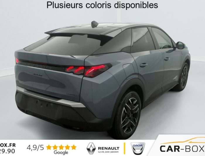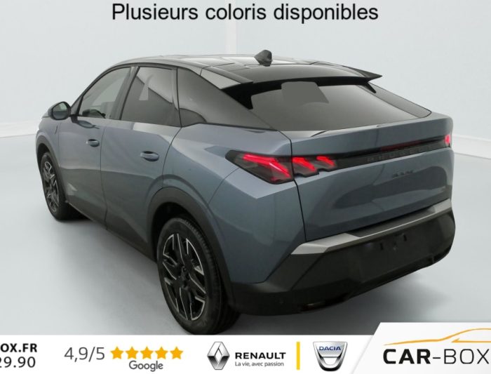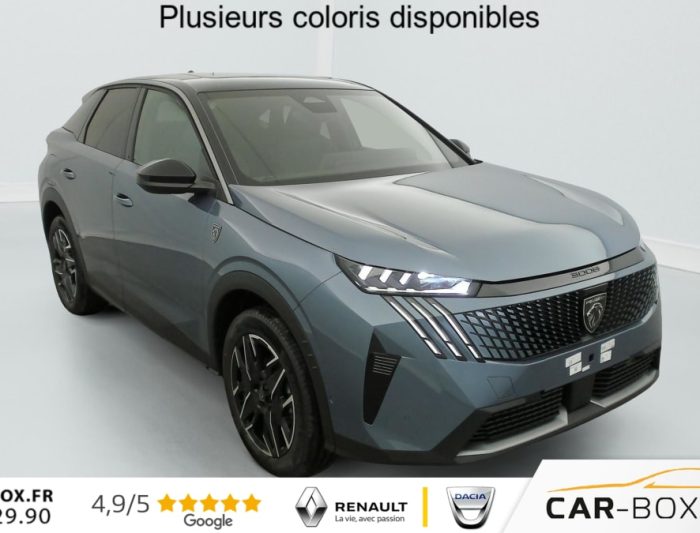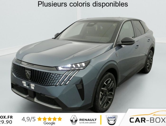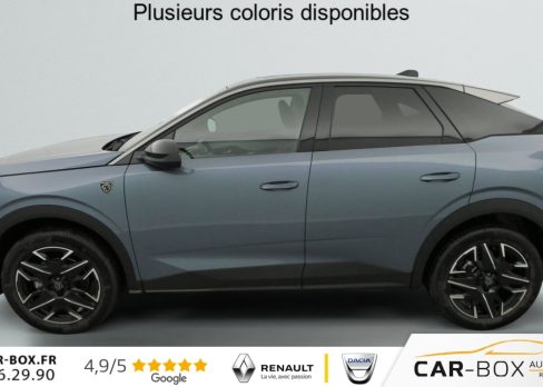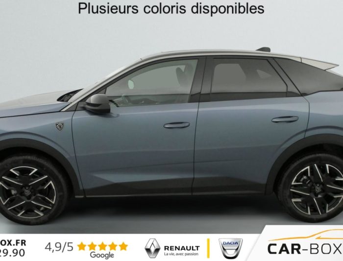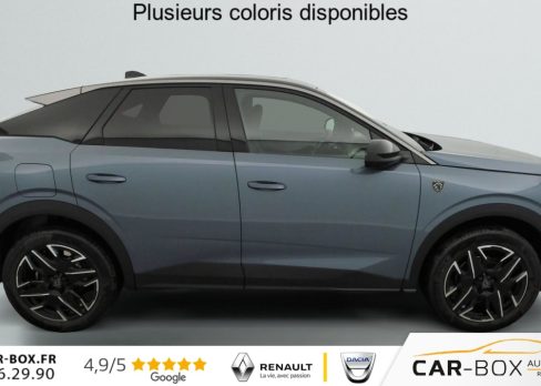 Hors frais de dossierHybrid 145 e-DCS6 GT, hybride, gris, 17/11/2025, Véhicule livré sans kit de dépannage ni roue de secours, Frein de stationnement électrique, ESP avec aide au démarrage en pente, ABS, Détection de sous-gonflage indirecte, Essuie-vitre AV à déclenchement automatique, Direction assistée, Accoudoir central, Teintes métallisées : option incluse (valeur : 1 200 Eur TTC), 6 HP (2 tweeters et 2 woofers à l’AV et 2 larges bandes à l’AR), Rétroviseurs extérieurs dégivrants avec réglage et rabattement électriques, éclairage de seuil, Allumage automatique des phares, Hayon motorisé avec accès mains libres, Pédalier et repose pied aluminium, Plancher de coffre modulable 2 positions, Fixations ISOFIX et Top Tether aux places latérales AR, 4 poignées de maintien rétractables (2 à l’AV et 2 à l’AR), Volant chauffant, Sièges AV chauffants, PEUGEOT i-Toggles virtuels avec 10 raccourcis personnalisables, PEUGEOT i-Connect Advanced Navigation 3D connectée, 4 prises USB: 1 prise USB C (Data & charge) et 1 prise USB C (Charge) à l’AV, 2 prises USB C (Charge) à l’AR, Jantes alliage 19" diamantées BREDA Noir Orbital, vernis brillant, 6 airbags: frontaux conducteur et passager auto-adaptatifs (passager neutralisable par clé), latéraux conducteur et passager AV (thorax et bassin), rideaux aux places AV et AR (tête et thorax), Feux diurnes 3 griffes à LED, Accès et démarrage mains libres Proximity 2 Télécommandes 3 boutons (verrouillage, coffre, déverrouillage), Banquette AR avec dossier rabattable 40/20/40, Feux AR 3 griffes à LED 3D, Projecteurs PEUGEOT PIXEL LED Eclairage adaptatif, commutation automatique des feux de route, feux de route avec fonctions anti éblouissement et boost, Toit et becquet AR Black Diamond, Eclairage d’ambiance indirect, jour & nuit sur la planche de bord, les panneaux de portes AV et sous l’écran panoramique 21 », associé aux modes de conduite, personnalisable en 8 couleurs, Volant compact, cuir fleur lisse et perforé avec commandes intégrées Noir Laqué, décors Cast Iron, surpiqûres Iced Clay, insert Noir laqué avec badge ‘GT’, Commutation adaptative des projecteurs, PEUGEOT i-Cockpit panoramique avec écran incurvé et flottant 21 » HD, Sièges AV à réglage en hauteur manuel, Pack 360° Vision and Drive Assist Plus : Alarme (périmétrique, volumétrique et anti-soulèvement) Rétroviseurs extérieurs dégivrants avec réglage et rabattement électriques, éclairage de seuil Recharge smartphone sans fil (puissance 15W) VisioPark 360° 4 caméras HD (AV, AR et latérales), Aide au stationnement AV, AR et latérale (graphique et sonore) Drive Assist Plus 2.0 (conduite semi autonome): Régulateur de vitesse adaptatif avec fonction Stop & Go, Aide au maintien de la position dans la voie, Changement de voie semi automatique Détection de trafic AR Surveillance d’angles morts longue portée et aide au changement de voie, Alerte de trafic AR transversal Indexation à la marche AR avec mémorisation Super-condamnation des ouvrants : option incluse (valeur : 1 300 Eur TTC), Pack Toit ouvrant : Clean cabin avec capteur de particules dans l’habitacle Toit ouvrant panoramique et velum intérieur à commandes impulsionnelles : option incluse (valeur : 1 250 Eur TTC), Sellerie tissu NEW UZIRIS embossé, accompagnement TEP Isabella, écharpe tissu RIMINI chiné, surpiqûres Iced Clay, 2 prises 12 V (Console centrale, coffre), Contrôle de traction, Boîte de vitesse automatique, séquentielle (6 rapports), Eclairage intérieur Miroirs de courtoisie conducteur et passager occultables éclairés à LED, Pack Safety Plus : Alerte attention conducteur Régulateur / Limiteur de vitesse Reconnaissance étendue des panneaux de signalisation et préconisation de vitesse Alerte active de franchissement involontaire de ligne et bas côté Freinage d’urgence automatique avec alerte risque de collision pilotée par caméra et radar, Vitres AV électriques, Air conditionné automatique bi-zone, Pare-brise feuilleté acoustique, Lève-vitres AV/AR électriques et séquentiels avec antipincement, Siège conducteur à réglage lombaire manuel