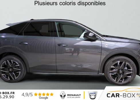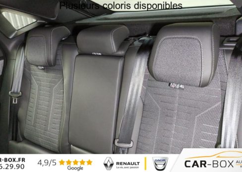 ABS, Accès et démarrage mains libres Proximity 2 Télécommandes 3 boutons (verrouillage, coffre, déverrouillage), Accoudoir central, Air conditionné automatique bi-zone, Allumage automatique des phares, Banquette AR avec dossier rabattable 40/20/40, Boîte de vitesse automatique, séquentielle (6 rapports), Commutation adaptative des projecteurs, Commutation automatique des feux de route, Contrôle de traction, Détection de sous-gonflage indirecte, Direction assistée, Drive Assist - Régulateur de vitesse adaptatif avec fonction Stop & Go, Eclairage d'ambiance indirect, jour & nuit sur la planche de bord, les panneaux de portes AV et sous l'écran panoramique 21'', associé aux modes de conduite, personnalisable en 8 couleurs, Eléments de style éxterieur : Bandeau entre les projecteurs Noir laqué avec logo 3008 +Calandre couleur caisse, écopes latérales Noir laqué, décor inférieur Gris Meteor, jupe inférieure Noir grainé + Vitres AR, vitres de custode et lunette AR surteintées + Lécheurs de vitres masqués + Enjoliveurs de passages de roues et protections inférieures de portes Noir grainé + Bandeau entre les feux AR Noir laqué avec lettrage PEUGEOT + Pare chocs AR avec décor Gris Meteor et jupe inférieure Noir grainé, Monogrammes AV et AR, Eléments de style intérieure : Planche de bord moussée avec décor tissu RIMINI chiné + Décor d'alcôve en Aluminium sérigraphié, façade et aérateurs Noir laqué avec décor Cast Iron + Panneaux de portes avec décor tissu RIMINI chiné + décor d'alcôve en Aluminium sérigraphié et jonc Cast Iron + Accoudoirs TEP Isabella, surpiqûres Iced Clay à l' AV + Console centrale avec décor tissu RIMINI chiné, façade Noir laqué et jonc Cast Iro + Accoudoir tissu RIMINI chiné, ESP avec aide au démarrage en pente, Essuie-vitre AV à déclenchement automatique, Feux AR 3 griffes à LED 3D, Feux diurnes 3 griffes à LED, Fixations ISOFIX et Top Tether aux places latérales AR, Fonction Mirror Screen, Frein de stationnement électrique, Habitacle et ciel de pavillon Noir, Hayon motorisé avec accès mains libres, Jantes alliage 19" diamantées BREDA Noir Orbital, Lève-vitres AV/AR électriques et séquentiels avec antipincement, Monogrammes ailes AV: 'blason PEUGEOT', Monogrammes AR 3008 et Hybrid, Monogrammes AV: blason PEUGEOT et 3008, Pack Safety Plus : Régulateur / Limiteur de vitesse + Freinage d'urgence automatique avec alerte risque de collision et protection des usagers de la route vulnérables (piétons, cyclistes,... ) + Alerte active de franchissement involontaire de ligne et bas côté + Reconnaissance étendue des panneaux de signalisation et préconisation de vitesse + Alerte attention conducteur, Pédalier et repose pied aluminium, PEUGEOT i-Cockpit panoramique avec écran incurvé et flottant 21'' HD, PEUGEOT i-Connect Advanced Navigation 3D connectée, 4 prises USB: 1 prise USB C (Data & charge) et 1 prise USB C (Charge) à l'AV, 2 prises USB C (Charge) à l'AR, PEUGEOT i-Toggles virtuels avec 10 raccourcis personnalisables, Plancher de coffre modulable 2 positions, Projecteurs PEUGEOT PIXEL LED Eclairage adaptatif, commutation automatique des feux de route, feux de route avec fonctions anti éblouissement et boost, Rétroviseurs extérieurs dégivrants avec réglage et rabattement électriques, éclairage de seuil, Sellerie tissu NEW UZIRIS embossé, accompagnement TEP Isabella, écharpe tissu RIMINI chiné, surpiqûres Iced Clay, Seuil de portes AV inox avec lettrage PEUGEOT, Siège conducteur à réglage lombaire manuel, Sièges AV à réglage en hauteur manuel, Sièges AV chauffants, Teinte métallisée Gris Titane, Toit et becquet AR Black Diamond, Visiopark 1 Caméra de recul & aide au stationnement AV et AR, graphique et sonore, Volant chauffant, Volant compact, cuir fleur lisse et perforé avec commandes intégrées Noir Laqué, décors Cast Iron, surpiqûres Iced Clay, insert Noir laqué avec badge GT', 2 prises 12 V (Console centrale, coffre), 4 poignées de maintien rétractables (2 à l'AV et 2 à l'AR), 6 airbags: frontaux conducteur et passager auto-adaptatifs (passager neutralisable par clé), latéraux conducteur et passager AV (thorax et bassin), rideaux aux places AV et AR (tête et thorax), 6 HP (2 tweeters et 2 woofers à l'AV et 2 larges bandes à l'AR)