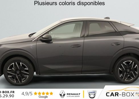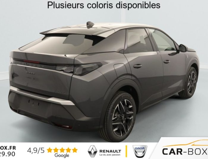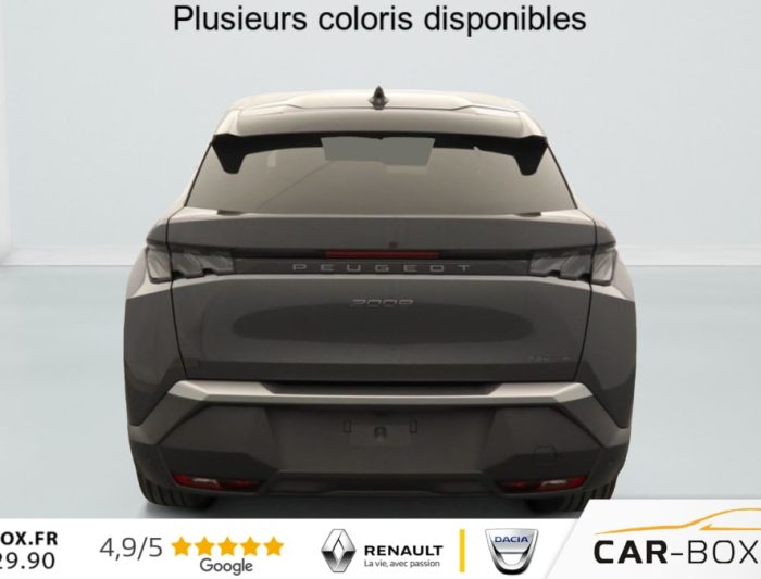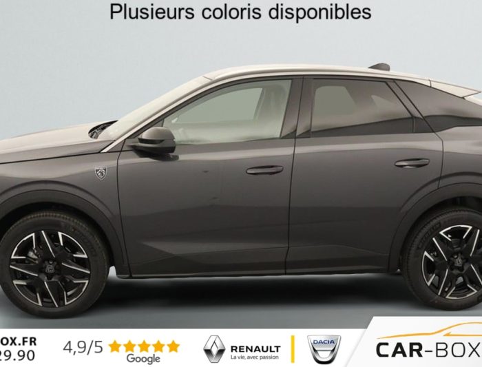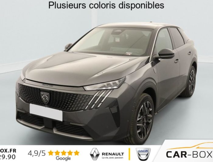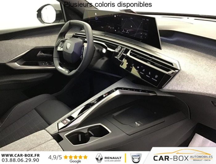 Hors frais de dossierPhase 4 Gt 1.2 HYBRID 145, hybride, gris, 08/10/2025, ABS, Accès et démarrage mains libres, Accoudoir arrière, Aide à la conduite avancée (conduite semi-autonome), Aide au démarrage en cote, Aide au maintien dans la file (LKAS), Aide au stationnement arrière, Aide au stationnement avant, Apple CarPlay + AndroidAuto, Avertissement d’angle mort », Avertissement de fatigue, Avertissement de survitesse, Avertissement de trafic arrière, Banquette arrière rabattable (1/3 – 2/3), Bluetooth, Caméra de recul, Caméra 360°, Capteur de lumière, Chargeur à induction pour smartphones, Climatisation automatique bizone, Détecteur de pluie, Ecran miroir (connectivité smartphone via Mirrorscreen), Frein de stationnement électrique, Freinage actif d’urgence, Hayon électrique, Intérieur simili/tissus, Jantes en aluminium 19 », kit de réparation, Peinture métallisée, Peugeot i-Cockpit, Phares à LED, Prise 12 V, Programme de stabilité électronique (ESP), Radio DAB, Reconnaissance des panneaux de signalisation, Régulateur de vitesse adaptatif, Rétroviseurs extérieurs à réglage électrique, Rétroviseurs extérieurs chauffants, Rétroviseurs extérieurs électriques et chauffants, Rétroviseurs extérieurs noirs, Rétroviseurs extérieurs rabattables électriquement, Rétroviseurs extérieurs rabattables électriquement, Sélecteur de mode de conduite (Drive Mode), Siège conducteur à réglage lombaire, Sièges avant chauffants, Système d’alarme, Système d’attache Isofix, Système de limitation de vitesse, Système de navigation, Tapis avant & arrière, Toit en couleur Noir, USB, Vitres arrières surteintées, Vitres électriques avant et arrière, Volant chauffant