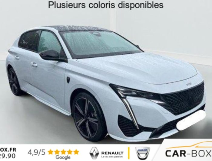 Frein de stationnement électrique, Système Start & Stop, Peugeot Connect SOS & Assistance, Ciel de pavillon noir, ABS, Détection de sous gonflage, Caméra de recul, Aide au stationnement AR, Vitres latérales AR et lunette AR surteintées, Surtapis AV/AR, Banquette AR rabattable 1/3-2/3, Alerte attention conducteur, Commutation automatique des feux de route, Régulateur / Limiteur de vitesse, Accès et démarrage mains libres, Rétroviseur intérieur photosensible, Ceintures de sécurité AR 3 points à enrouleur (x3) avec prétensionneurs et limiteurs d'effort aux places latérales, Airbags frontaux conducteur et passager adaptatifs (passager neutralisable par clé), airbags latéraux conducteur et passager AV. airbags rideaux de tête aux places AV/AR, Essuie-vitre AV à déclenchement automatique, Seuils de porte AV aluminium, Active Safety Brake (freinage automatique d'urgence), Alerte active de franchissement involontaire de ligne et bas côté, Coques de rétroviseurs extérieurs Noir Brillant, Allumage automatique des feux de croisement, Bandeau entre feux AR Noir Brillant, Reconnaissance étendue des panneaux de signalisation, 2 télécommandes 3 boutons, Sélecteur mode de conduite Eco et Sport, Lève-vitres électriques AV/ AR et séquentiels avec anti-pincement, Rétroviseurs extérieurs électriques, dégivrants et rabattables électriquement, avec répétiteurs de feux clignotants à LED, Peugeot i-Cockpit avec combiné d'instrumentation numérique 10'' personnalisable, Jupe AR Noir Brillant avec décors chromés, Diffuseurs d'air aux places AR, Smart Multidrive: personnalisation du combiné et éclairage d'ambiance LED intérieur associés aux modes de conduite, Projecteurs Peugeot Matrix LED, Feux AR spécifiques avec allumage dynamique griffe à griffe, Calandre AV spécifique Noir verni avec inserts chromés et écopes Noir Brillant, Elargisseurs de pare chocs AV et de bas de caisse latéraux, Monogrammes latéraux emblème Lion, Jantes alliage 18" Kamakura diamantées, Décor Alu sur panneaux de porte, Feux diurnes à LED sous projecteurs nouvelle signature Peugeot, Eclairage d'ambiance (8 couleurs), 2 prises USB-C à l'AR, Fonction Mirror Screen (Apple CarPlay/Android Auto) sans fil, Ceintures de sécurité AV 3 points à enrouleur, avec prétensionneurs et limiteurs d'effort, 2 prises USB-C à l'AV, Fixations ISOFIX aux 2 places latérales AR (Top Tether), Lécheurs de vitres Noir Brillant, ESP avec fonction Hill Assist (Aide au démarrage en pente), Accoudoir central AV avec compartiment de rangement, Pare-brise teinté feuilleté acoustique, Volant avec réglage manuel en hauteur et en profondeur, Aide au stationnement AV, Navigation connectée avec écran central tactile 10'' et i-Toggles virtuels personnalisables, Teintes métallisées : option incluse (valeur : 900 Eur TTC), Teintes métallisées : option incluse (valeur : 900 Eur TTC), Garnissage tri-matières TEP/Tissu New Belomka, Planche de bord avec jonc transversal peint, décor Alu et surpiqûres Vert, 4 poignées de maintien, Driver Sport Pack - Personnalisation du combiné spécifique - Sonorité du moteur amplifiée et plus sportive (désactivable) : Personnalisation du combiné spécifique Sonorité du moteur amplifiée et plus sportive (désactivable) , Pack Drive Assist - Régulateur de vitesse adaptatif avec fonction Stop&Go Maintient automatiquement la vitesse du véhicule à la vitesse de référence définie par le conducteur, et ajuste automatiquement la vitesse du véhicule pour garder une distance de sé : Régulateur de vitesse adaptatif avec fonction Stop&Go , Pack Safety Plus Active Safety Brake piloté par caméra et radar : Active Safety Brake piloté par caméra et radar , Pédalier Sport et repose pied en aluminium, Réglage lombaire du siège conducteur, Pack Sensation Système Hi-Fi Premium FOCAL - La signature acoustique française : Technologies exclusives FOCAL 10 HP, Toit ouvrant électrique avec velum, Recharge smartphone par induction : Recharge smartphone par induction Système Hi Fi Premium FOCAL 10 HP Toit ouvrant électrique avec velum : option incluse (valeur : 1 800 Eur TTC), Contrôle de traction, Boîte de vitesse automatique (8 rapports), Siège conducteur réglable en hauteur, Siège passager réglable en hauteur, Vitres AV électriques, Volant cuir, Direction assistée électrique, Air conditionné automatique bi-zone, Prise 12V à l'AV