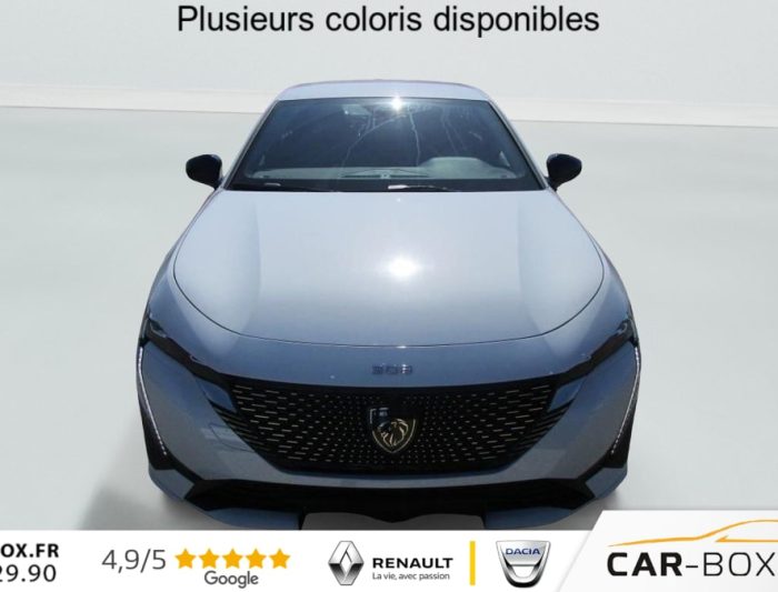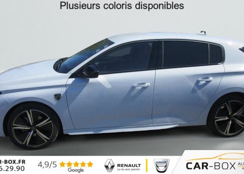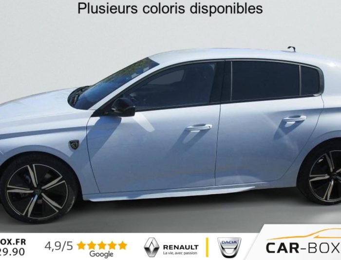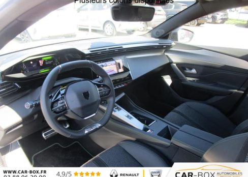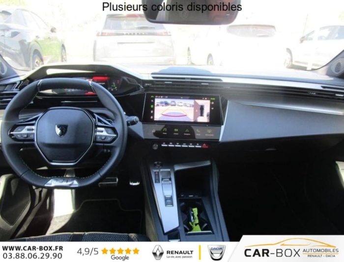 Sièges avant chauffants, Frein de stationnement électrique, Système Start & Stop, Peugeot Connect SOS & Assistance, Ciel de pavillon noir, Détection de sous gonflage, Caméra de recul, Aide au stationnement AR, Vitres latérales AR et lunette AR surteintées, Surtapis AV et AR, Banquette AR rabattable 1/3-2/3, Alerte attention conducteur, Commutation automatique des feux de route, Régulateur / Limiteur de vitesse, Accès et démarrage mains libres, Rétroviseur intérieur photosensible, Ceintures de sécurité AR 3 points à enrouleur (x3) avec prétensionneurs et limiteurs d'effort aux places latérales, Airbags frontaux conducteur et passager adaptatifs (passager neutralisable par clé), airbags latéraux conducteur et passager AV, airbags rideaux de tête aux places AV et AR, Essuie-vitre AV à déclenchement automatique, Seuils de porte AV aluminium, Active Safety Brake (freinage automatique d'urgence), Alerte active de franchissement involontaire de ligne et bas côté, Coques de rétroviseurs extérieurs Noir Brillant, Allumage automatique des feux de croisement, Bandeau entre feux AR noir brillant, Reconnaissance étendue des panneaux de signalisation, 2 télécommandes 3 boutons, Sélecteur mode de conduite Eco et Sport, Lève-vitres électriques AV et AR et séquentiels avec anti-pincement, Rétroviseurs extérieurs électriques, dégivrants et rabattables électriquement avec répétiteurs de feux clignotants à LED, Peugeot i-Cockpit avec combiné d'instrumentation numérique 10'' personnalisable, Jupe AR Noir Brillant avec décors chromés, Diffuseurs d'air aux places AR, Smart Multidrive: personnalisation du combiné et éclairage d'ambiance LED intérieur associés aux modes de conduite, Projecteurs Peugeot Matrix LED, Feux AR spécifiques avec allumage dynamique griffe à griffe, Calandre AV spécifique Noir verni avec inserts chromés et écopes Noir Brillant, Elargisseurs de pare chocs AV et de bas de caisse latéraux, Monogrammes latéraux emblème Lion, Jantes alliage 18" Kamakura diamantées, Décor Alu sur panneaux de porte, Feux diurnes à LED sous projecteurs nouvelle signature Peugeot, Eclairage d'ambiance (8 couleurs), 2 prises USB-C à l'AR, Fonction Mirror Screen (Apple CarPlay/Android Auto) sans fil, Ceintures de sécurité AV 3 points à enrouleur, avec prétensionneurs et limiteurs d'effort, 2 prises USB-C à l'AV, Fixations ISOFIX aux 2 places latérales AR (Top Tether), Lécheurs de vitres Noir Brillant, ESP avec fonction Hill Assist (Aide au démarrage en pente), Accoudoir central AV avec compartiment de rangement, Pare-brise teinté feuilleté acoustique, Volant avec réglage manuel en hauteur et en profondeur, Aide au stationnement AV, Navigation connectée avec écran central tactile 10'' et i-Toggles virtuels personnalisables, Teintes métallisées : option incluse (valeur : 900 Eur TTC), Teintes métallisées : option incluse (valeur : 900 Eur TTC), Garnissage tri-matières TEP/Tissu New Belomka, Planche de bord avec jonc transversal peint, décor Alu et surpiqûres Vert, 4 poignées de maintien, Driver Sport Pack Personnalisation du combiné spécifique, sonorité du moteur amplifiée et plus sportive (désactivable) : Personnalisation du combiné spécifique Sonorité du moteur amplifiée et plus sportive (désactivable) , Pack Drive Assist - Régulateur de vitesse adaptatif avec fonction Stop&Go Maintient automatiquement la vitesse du véhicule à la vitesse de référence définie par le conducteur, et ajuste automatiquement la vitesse du véhicule pour garder une distance de sé : Régulateur de vitesse adaptatif avec fonction Stop&Go , Pack Safety Plus Active Safety Brake piloté par caméra et radar : Active Safety Brake piloté par caméra et radar , Pédalier Sport et repose pied en aluminium, Réglage lombaire du siège conducteur, Pack Vision 360 and Drive Assist Plus Peugeot i-Cockpit avec instrumentation numérique 10'' 3D personnalisable, VisioPark 360° (4 caméras) + Rear warning (surveillance d'angles morts, aide au changement de voie longue portée et alerte de trafic AR transve : Aide au maintien de la position dans la voie (conduite semi-autonome) Clean cabin avec capteur de particules dans l'habitacle Pack Inviolabilité Alarme périmétrique, volumétrique et anti-soulèvement + Aide au stationnement AV Peugeot i-Cockpit 3D avec combiné d'instrumentation numérique personnalisable Rear Warning - surveillance d'angles morts, aide au changement de voie longue portée et alerte de trafic AR transversal VisioPark 360° (4 caméras) : option incluse (valeur : 700 Eur TTC), Siège conducteur réglable en hauteur, Siège passager réglable en hauteur, Volant cuir, Direction assistée électrique, Air conditionné automatique bi-zone, Prise 12 V à l'AV