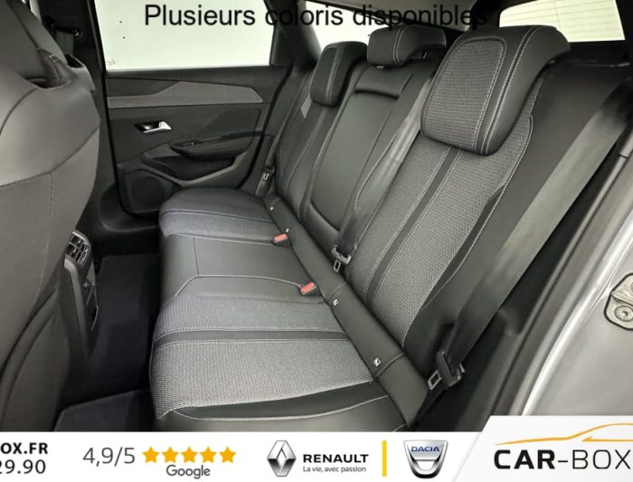 Allumage automatique des feux de croisement et essuie-vitre, Calandre avant Noir avec inserts chromés et écopes Noir, Caméra de recul, Climatisation automatique bi-zone, Commutation automatique des feux de route, Coques de rétroviseurs extérieurs noir brillant, Détection de sous-gonflage, Écran tactile 10'' DAB et Fonction Mirror Screen (Apple Carplay / Android Auto) sans fil, Jantes alliage 17‘' HALONG diamantées, Jupe arrière Noir Brillant avec décors chromés, Lécheurs de vitres Noir Brillant, Pack Drive Assist : Régulateur de vitesse adaptatif, Pack Safety Plus : Active Safety Brake, Peugeot i-Cockpit® avec combiné numérique 10'' personnalisable, Projecteurs Peugeot LED avec feux diurnes à LED, Radars stationnement arrière, Reconnaissance étendue des panneaux de signalisation, Régulateur et limiteur de vitesse, Rétroviseur intérieur photosensible, Rétroviseurs extérieurs électriques, dégivrants et rabattables électriquement, Sellerie tri-matières TEP / tissu « Falgo », surpiqûres Bleu, Teinte métallisée : : option incluse (valeur : 900 Eur TTC), Vitres latérales arrière et lunette arrière surteintées, Volant croûte de cuir