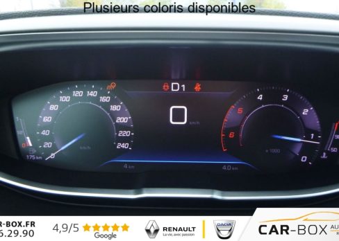 Acces et demarrage mains libres, Accoudoir central AV a ouverture papillon, avec compartiment de rangement , Air conditionne automatique bi-zones avec aerateurs aux places AR, Alerte exces de vitesse , Assistant vocal , Avertisseur de temps de conduite, Barres de toit longitudinales, Coques de retroviseurs exterieurs Noir Perla Nera, Detection de panneaux de signalisation , Detection de sous-gonflage indirecte, Direction assistee electrique, colonne de direction reglable en hauteur et profondeur (mecanique), Drive Mode : Choix de 3 modes de conduite (Eco, Normal ou Sport), Essuie-vitre AV avec systeme de lavage ''Magic Wash'', Feux antibrouillard arriere , Feux AR a LED avec effet 3D, Fixations Isofix aux places arriere (rang 2), Fonction ''Mirror Screen'' (Apple CarPlay / Android Auto ), Frein de stationnement electrique avec aide au demarrage en pente et serrage automatique, Jantes alliage 18'', Kit de depannage de pneumatique (Compresseur 12 volts, flacon de produit de colmatage), Leve-vitres AV et AR electriques sequentiels avec antipincement, Navigation 3D connectee avec ecran tactile capacitif 10'' HD, Pack City 1 (Aide graphique et sonore au stationnement AV, Pack City Aide au stationnement AR (Graphique et sonore) Visiopark 1 (Camera de recul avec restitution sur l'ecran tactile d'une vue AR et d'une vue de dessus de l'environnement AR du vehicule)) : option incluse (valeur : 200 Eur TTC), Pack Eclairage d'ambiance - Eclairage a LED des caves a pied , Pack Enfants (Rideaux pare-soleil en rang 2, Securite enfants electrique des vitres AR, Tablettes aviation aux dos des sieges du rang 1) : option incluse (valeur : 210 Eur TTC), Pack Safety Plus (Alerte active de franchissement involontaire de ligne et bas cote, Alerte attention conducteur, Commutation automatique des feux de route, Pack Safety Freinage d'urgence automatique avec camera & radar Alerte risque de collision Alerte attention conducteur), Pack Visibilite (Allumage automatique des feux de croisement, Eclairage d'accompagnement automatique, Essuie-vitre AV a declenchement automatique), Palettes au volant , Pares-soleil avec miroirs de courtoisie eclaires , Passages de roues rapportes Noir Mat, Peugeot Connect SOS & Assistance et Teleservices, Peugeot i-Cockpit avec combine tete haute numerique, volant compact multi-fonctions, Plafonniers AV, rang 2 et rang 3 a LED avec 2 spots de lecture, Prises 12V avant, arriere et coffre , Projecteurs ''Peugeot LED Technology'' avec feux diurnes a LED sous projecteurs, Regulateur / Limiteur de vitesse, Retroviseur interieur photosensible, Retroviseurs exterieurs degivrants avec reglage et rabattement electriques, Sieges AV reglables en hauteur, Systeme start and stop , Trappes de rangement (x2) aux pieds des passagers du 2eme rang, Vitres laterales AR et lunette AR chauffante surteintees, Volant croute de cuir Mistral, 2 sieges escamotables et extractibles pour les passagers - 3eme rang, 3 sieges independants,coulissants,inclinables et escamotables dans le plancher - 2eme rang, 6 airbags (Frontaux adaptatifs, lateraux AV, rideaux AV, rang 2 et rang 3)