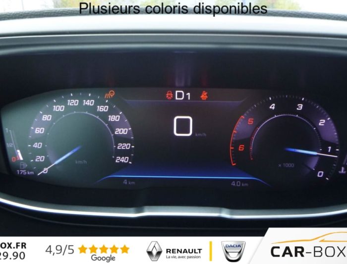 Acces et demarrage mains libres, Accoudoir central AV a ouverture papillon, avec compartiment de rangement eclaire et refrigerable, Air conditionne automatique bi-zones avec aerateurs aux places AR, Appuis-tete a securite optimisee reglables en hauteur (conducteur, passager, rang 2 (x3), Avertisseur de temps de conduite, Barres de toit longitudinales, Calandre a damiers chromes, Coques de retroviseurs exterieurs Noir Perla Nera, Detection de sous-gonflage indirecte, Direction assistee electrique, colonne de direction reglable en hauteur et profondeur (mecanique), Drive mode , Enjoliveurs d'ailes AV chromes, Essuie-vitre AV avec systeme de lavage ''Magic Wash'', Feux AR a LED avec effet 3D, Fixations Isofix aux places arriere (rang 2), Fonction ''Mirror Screen'' (Apple CarPlay / Android Auto ), Frein de stationnement electrique avec aide au demarrage en pente et serrage automatique, Jantes alliage 18'', Kit de depannage de pneumatique, Leve-vitres AV et AR electriques sequentiels avec antipincement, Navigation 3D connectee avec ecran tactile capacitif 10'' HD, Pack City 1 (Aide graphique et sonore au stationnement AV, Pack City Aide au stationnement AR (Graphique et sonore) Visiopark 1 (Camera de recul avec restitution sur l'ecran tactile d'une vue AR et d'une vue de dessus de l'environnement AR du vehicule)) : option incluse (valeur : 200 Eur TTC), Pack Enfants (Rideaux pare-soleil en rang 2, Securite enfants electrique des vitres AR, Tablettes aviation aux dos des sieges du rang 1) : option incluse (valeur : 210 Eur TTC), Pack Safety Plus (Alerte active de franchissement involontaire de ligne et bas cote, Alerte attention conducteur, Commutation automatique des feux de route, Pack Safety Freinage d'urgence automatique avec camera & radar Alerte risque de collision Alerte attention conducteur), Pack Visibilite (Allumage automatique des feux de croisement, Eclairage d'accompagnement automatique, Essuie-vitre AV a declenchement automatique), Palettes au volant , Pares-soleil avec miroirs de courtoisie eclaires , Peugeot Connect SOS & Assistance et Teleservices, Peugeot i-Cockpit avec combine tete haute numerique, volant compact multi-fonctions, Prises 12V avant, arriere et coffre , Projecteurs ''Peugeot LED Technology'' avec feux diurnes a LED sous projecteurs, Reconnaissance etendue des panneaux de signalisation, Regulateur / limiteur de vitesse avec Preconisation Limitation de Vitesse, Retroviseur interieur photosensible, Retroviseurs exterieurs degivrants avec reglage et rabattement electriques, Securite enfants electrique des vitres AR, Sieges AV reglables en hauteur, Vitres laterales AR et lunette AR chauffante surteintees, Volant Cuir fleur Mistral, 2 sieges escamotables et extractibles pour les passagers - 3eme rang, 6 airbags (Frontaux adaptatifs, lateraux AV, rideaux AV, rang 2 et rang 3)