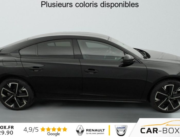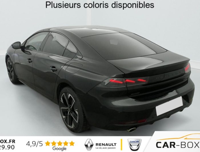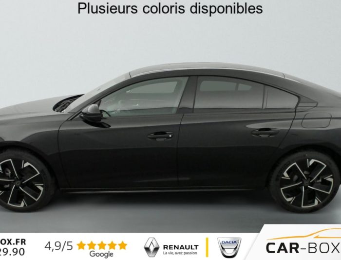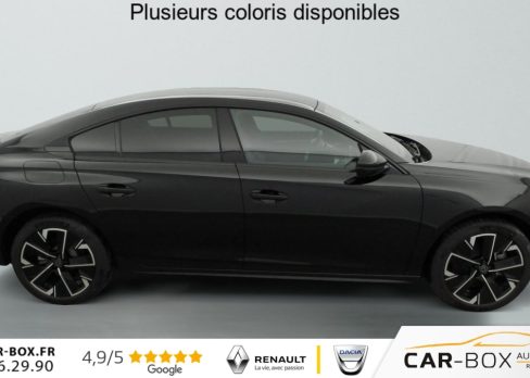 Hybrid 180 e-EAT8 Allure, hybride, noir, 29/08/2025, Accès et démarrage mains libres, ABS, Détection de sous-gonflage indirecte, Avertisseur de temps de conduite, Air conditionné automatique bi-zone avec aérateurs aux places AR, Verrouillage automatique de tous les ouvrants en roulant, Vitres latérales AR et lunette AR surteintées, Frein de stationnement électrique avec aide au démarrage en pente et serrage automatique, Peinture métallisée : option incluse (valeur : 900 Eur TTC), Chargeur embarqué 7, 4 kW : option incluse (valeur : 400 Eur TTC), AVAS (système d’alerte sonore du véhicule émis à faible allure en roulage électrique, audible depuis l’extérieur pour la sécurité des piétons), Fonction DAB (Radio Numérique Terrestre), ESP, Toggle Switches’ chromés (touches ‘piano’ d’activation des fonctions de l’écran tactile), Contours de vitres latérales noir brillant, Régulateur / limiteur de vitesse avec Préconisation Limitation de Vitesse, Câble de recharge T2 mode 2 (10 A / 2, 3 kW), Fonction Mirror Screen (Apple CarPlay / Android Auto ) sans fil, 6 airbags (Frontaux adaptatifs, latéraux AV, rideaux AV/AR), Appuis-tête à sécurité optimisée réglables en hauteur (conducteur, passager et AR x3), Feux arrière Full LED avec indicateurs de direction défilants, Kit de dépannage de pneumatique, Programme de Stabilité Electronique (ESC) Avec antipatinage des roues (ASR), antiblocage des roues (ABS), répartiteur électronique de freinage (REF), assistance au freinage d’urgence (AFU), contrôle dynamique de stabilité (CDS) et contrôle de stabilité de la remorque (TSM), Projecteurs Peugeot Matrix LED Technology Eclairage adaptatif avec correction automatique de site, 3 modes (Routes, Autoroutes et Brouillard) et feux diurnes 3 griffes à LED intégrés aux projecteurs, Sécurité enfants des vitres AR, Pack Safety Plus : Freinage d’urgence automatique avec caméra & radar Système de surveillance d’angle mort Reconnaissance étendue des panneaux de signalisation Alerte risque de collision et Alerte attention conducteur Alerte de franchissement involontaire de ligne et bas côté, Aide au stationnement AR, AV et latérale (graphique et sonore), Sélecteur de boite de vitesses automatique e-Toggle, VisioPark 1 Caméra de recul Haute Définition 180° avec restitution sur l’écran tactile d’une vue AR et d’une vue de dessus de l’environnement AR du véhicule, Coques et embases de rétroviseurs extérieurs Noir brillant, Signature ‘PEUGEOT’ sur le bandeau de volet de coffre, Décors de planche de bord et panneaux de portes aspect carbone, et façade de console centrale Noir brillant, Volant cuir fleur avec commandes intégrées, Direction assistée électrique, réglable en hauteur et profondeur (mécanique), Pack Visibilité : Eclairage d’accompagnement automatique Allumage automatique des feux de croisement Essuie-vitre AV à déclenchement automatique, Rétroviseurs extérieurs électriques et dégivrants, rabattables électriquement avec éclairage d’accueil à LED, témoins de surveillance d’angles morts, Peugeot i-Cockpit avec combiné numérique tête haute 12, 3", Peugeot Connect SOS, Prises 12V (x2): x1 dans le rangement fermé de console centrale / x1 dans le coffre, Prises USB-C au 1er rang (x2) Dans le rangement sous l’accoudoir central AV: x1 charge/data / x1 charge, Trappe de recharge électrique rétroéclairée avec indicateur d’état de charge, Calandre avec motif évolutif de la couleur de la carrosserie, Badges 508 et signature PEUGEOT de couleur Gris Basalte, Sellerie mi-TEP / Tissu Falgo avec surpiqures Quartz, Sièges conducteur et passager réglables en hauteur, avec réglage lombaire électrique (4 voies), Badge "HYBRID" sur volet de coffre, Peugeot i-Connect Advanced – Navigation 3D connectée (cartographie Europe) avec écran tactile 10" HD – Reconnaissance vocale en langage naturel, Sélecteur de modes de conduite ‘Drive Mode’ (Electric, Hybrid, Sport), Accoudoir central AV en TEP à ouverture papillon, avec compartiment de rangement éclairé, Eclairage intérieur LED : Plafonniers AV et AR avec 2 spots de lecture, Pare soleil avec miroirs de courtoisie éclairés, rangements, caves à pieds, Rétroviseur intérieur électrochrome, Contrôle de traction, Boîte de vitesse automatique (8 rapports), Jantes alliage 18" Epherra Bi-ton diamantées Noir Orbital brillant : option incluse (valeur : 0 Eur TTC), Vitres électriques AV, Fixations ISOFIX aux places latérales AR