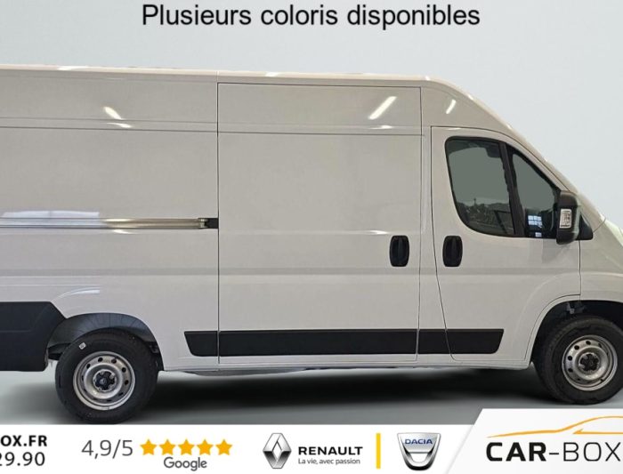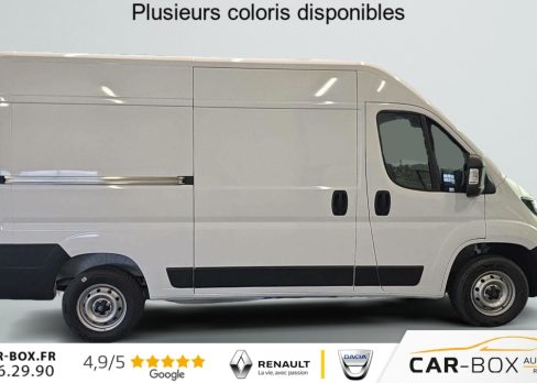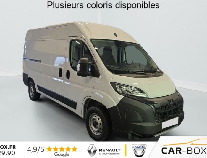Hors frais de dossierFOURGON TOLE 3.5 T L2H2 BLUEHDI 140 S BVM6, diesel, blanc, 30/10/2025, Régulateur limiteur de vitesse, Airbag conducteur, Banquette passagers 2 places, Rétroviseurs extérieurs électriques dégivrants, Airbag passager, Siège conducteur avec accoudoir, réglable en hauteur et réglage lombaire, Climatisation manuelle, Avertisseur sonore de marche AR, Porte latérale coulissante droite tôlée, Cloison tôlée, Portes AR à 2 battantes tôlés, Sellerie en tissu crêpe noir avec appuie-tête plein, Aide au stationnement AR avec avertisseur sonore pour piétons, Pack Roue de secours – Roue de secours – Support roue de secours : Roue de secours Support roue de secours : option incluse (valeur : 240 Eur TTC), ABS, AFU, ASR et ESP (ESC amélioré avec assistance en cas de vent latéral, contrôle de stabilité de la remorque, et freinage après collision), Alternateur standard (180 A), Antenne radio numérique, Batterie standard (95 Ah), Capteur de pression des pneumatiques (TPMS indirect), Condamnation centralisée avec plip, Crochets d’arrimage latéraux dans l’espace de chargement, Kit de réduction de CO2 – Spoiler central (DAM) – Guide d’air – Grille avec volets pilotés (AGS), Pare-choc AV grainé, Porte-gobelets au milieu du tableau de bord, Projecteurs halogène avec feux de circulation diurne, Rappel de bouclage des ceintures de sécurité, Teinte pastel : option incluse (valeur : 0 Eur TTC), Boitier télématique autonome (BTA), Pack Sécurité ADAS – Freinage d’urgence autonome avec détection piéton / cycliste – Aide au maintien dans la voie – Reconnaissance des panneaux de signalisation – Détecteur de fatigue ou d’inattention (attention assist) – Adaptation intelligente de la vitesse : Reconnaissance des panneaux de signalisation Freinage d’urgence autonome avec détection piéton / cycliste Aide au maintien dans la voie Détecteur de fatigue ou d’inattention (attention assist) Adaptation intelligente de la vitesse, Roues en acier 15", Système audio 5 » avec radio numérique DAB + Bluetooth + 1 port USB, Réservoir d’ADBlue 19 litres, Boîte de vitesse manuelle 6 rapports, Lève vitres AV électriques (séquentiel côté conducteur à la descente et à la montée avec fonction anti-pincement, séquentiel à la descente côté passager), Volant réglable en hauteur, Direction assistée électrique, Réservoir à carburant de 90 litres, Aide au démarrage en pente