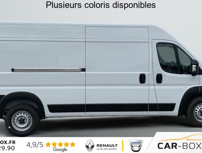 Hors frais de dossierFOURGON TOLE 3.5 T L3H2 140 S BVA8, diesel, blanc, 30/07/2025, Projecteurs antibrouillard avec fonction cornering : option incluse (valeur : 250 Eur TTC), Régulateur limiteur de vitesse, Airbag conducteur, Banquette passagers 2 places, Rétroviseurs extérieurs électriques dégivrants, Airbag passager, Siège conducteur avec accoudoir, réglable en hauteur et réglage lombaire, 3e clé avec télécommande : option incluse (valeur : 108 Eur TTC), Porte latérale coulissante droite tôlée, Cloison tôlée, Capucine de rangement : option incluse (valeur : 120 Eur TTC), Portes AR à 2 battantes tôlés, Sellerie en tissu crêpe noir avec appuie-tête plein, Aide au stationnement AR avec avertisseur sonore pour piétons, ABS, AFU, ASR et ESP (ESC amélioré avec assistance en cas de vent latéral, contrôle de stabilité de la remorque, et freinage après collision), Antenne radio numérique, Capteur de pression des pneumatiques (TPMS indirect), Condamnation centralisée avec plip, Crochets d’arrimage latéraux dans l’espace de chargement, Porte-gobelets au milieu du tableau de bord, Projecteurs halogène avec feux de circulation diurne, Rappel de bouclage des ceintures de sécurité, Teinte pastel : option incluse (valeur : 0 Eur TTC), Moulures noires sur les passages de roues AV/AR : option incluse (valeur : 120 Eur TTC), Boitier télématique autonome (BTA), Pack Sécurité ADAS : Reconnaissance des panneaux de signalisation Freinage d’urgence autonome avec détection piéton / cycliste Aide au maintien dans la voie Détecteur de fatigue ou d’inattention (attention assist) Adaptation intelligente de la vitesse, Roues en acier 16", Pack Chantier : Roue de secours Traction + avec aide à la descente (HDC) Suspension AR bilame Support roue de secours Pneumatiques M+S 3PMSF : option incluse (valeur : 1 200 Eur TTC), Caméra de recul : option incluse (valeur : 300 Eur TTC), Boîte de vitesse automatique 8 rapports, Lève vitres AV électriques (séquentiel côté conducteur à la descente et à la montée avec fonction anti-pincement, séquentiel à la descente côté passager), Pack Techno Premium : Système multimédia écran tactile 10 » avec Apple CarPlay et Android Auto sans fil + Navigation Climatisation automatique Chargeur de téléphone sans fil Combiné numérique 7 » Double port USB (A & C) : option incluse (valeur : 1 980 Eur TTC), Volant réglable en hauteur, Direction assistée électrique, Aide au démarrage en pente