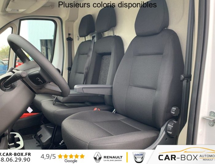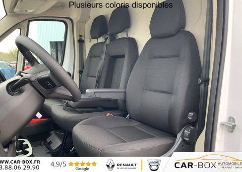 Projecteurs antibrouillard avec fonction cornering : option incluse (valeur : 250 Eur TTC), Régulateur limiteur de vitesse, Airbag conducteur, Banquette passagers 2 places, Rétroviseurs extérieurs électriques dégivrants, Airbag passager, Siège conducteur avec accoudoir, réglable en hauteur et réglage lombaire, 3e clé avec télécommande : option incluse (valeur : 108 Eur TTC), Porte latérale coulissante droite tôlée, Cloison tôlée, Capucine de rangement : option incluse (valeur : 120 Eur TTC), Portes AR à 2 battantes tôlés, Sellerie en tissu crêpe noir avec appuie-tête plein, Aide au stationnement AR avec avertisseur sonore pour piétons, ABS, AFU, ASR et ESP (ESC amélioré avec assistance en cas de vent latéral, contrôle de stabilité de la remorque, et freinage après collision), Antenne radio numérique, Capteur de pression des pneumatiques (TPMS indirect), Condamnation centralisée avec plip, Crochets d'arrimage latéraux dans l'espace de chargement, Porte-gobelets au milieu du tableau de bord, Projecteurs halogène avec feux de circulation diurne, Rappel de bouclage des ceintures de sécurité, Teinte pastel : option incluse (valeur : 0 Eur TTC), Moulures noires sur les passages de roues AV/AR : option incluse (valeur : 120 Eur TTC), Boitier télématique autonome (BTA), Pack Sécurité ADAS : Reconnaissance des panneaux de signalisation Freinage d'urgence autonome avec détection piéton / cycliste Aide au maintien dans la voie Détecteur de fatigue ou d'inattention (attention assist) Adaptation intelligente de la vitesse, Roues en acier 16", Pack Chantier : Roue de secours Traction + avec aide à la descente (HDC) Suspension AR bilame Support roue de secours Pneumatiques M+S 3PMSF : option incluse (valeur : 1 200 Eur TTC), Caméra de recul : option incluse (valeur : 300 Eur TTC), Boîte de vitesse automatique 8 rapports, Lève vitres AV électriques (séquentiel côté conducteur à la descente et à la montée avec fonction anti-pincement, séquentiel à la descente côté passager), Pack Techno Premium : Système multimédia écran tactile 10'' avec Apple CarPlay et Android Auto sans fil + Navigation Climatisation automatique Chargeur de téléphone sans fil Combiné numérique 7'' Double port USB (A & C) : option incluse (valeur : 1 980 Eur TTC), Volant réglable en hauteur, Direction assistée électrique, Aide au démarrage en pente