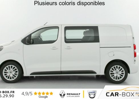 Aide au stationnement arrière, Anneaux d'arrimage (4 en Taille M et 6 en Taille XL répartis sur la zone de chargement) , Banquette fixe 3 places en rang 2 avec appui-tête réglables et 2 accoudoirs, Climatisation manuelle régulée , Cloison pleine PVC avec vitre plexiglass, Connectivité via BTA (appel d'urgence et d'assistance localisées), Détection de sous-gonflage indirecte, Pack Connectivité + Caméra : option incluse (valeur : 1 100 Eur TTC), Pack Look extérieur : option incluse (valeur : 500 Eur TTC), Pack Sécurité , Pack Visibilité (Allumage automatique des feux de croisement et des essuie-vitres), Porte Latérale Coulissante droite, Porte latérale coulissante gauche : option incluse (valeur : 400 Eur TTC), Portes arrière battantes 50/50 tôlées à ouverture à 180°, Régulateur - limiteur de vitesse, Rétroviseurs extérieurs électriques et chauffants, Revêtement de sol habitacle en TPO , Roue de secours homogène : option incluse (valeur : 180 Eur TTC), Siège conducteur individuel avec appui-tête réglable en hauteur et avec accoudoir, Siège passager individuel avec accoudoir : option incluse (valeur : 0 Eur TTC)
