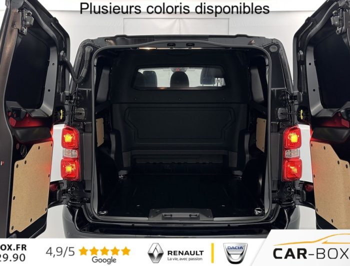 Aide au stationnement arrière, Anneaux d'arrimage (4 en Taille M et 6 en Taille XL répartis sur la zone de chargement) , Banquette fixe 3 places en rang 2 avec appui-tête réglables et 2 accoudoirs, Climatisation manuelle régulée , Cloison pleine PVC avec vitre plexiglass, Connectivité via BTA (appel d'urgence et d'assistance localisées), Détection de sous-gonflage indirecte, Pack Connectivité + Caméra : option incluse (valeur : 1 100 Eur TTC), Pack Look extérieur : option incluse (valeur : 500 Eur TTC), Pack Sécurité , Pack Visibilité (Allumage automatique des feux de croisement et des essuie-vitres), Porte Latérale Coulissante droite, Porte latérale coulissante gauche : option incluse (valeur : 400 Eur TTC), Portes arrière battantes 50/50 tôlées à ouverture à 180°, Régulateur - limiteur de vitesse, Rétroviseurs extérieurs électriques et chauffants, Revêtement de sol habitacle en TPO , Roue de secours homogène : option incluse (valeur : 180 Eur TTC), Siège conducteur individuel avec appui-tête réglable en hauteur et avec accoudoir, Siège passager individuel avec accoudoir : option incluse (valeur : 0 Eur TTC), Teinte métallisée : option incluse (valeur : 540 Eur TTC)