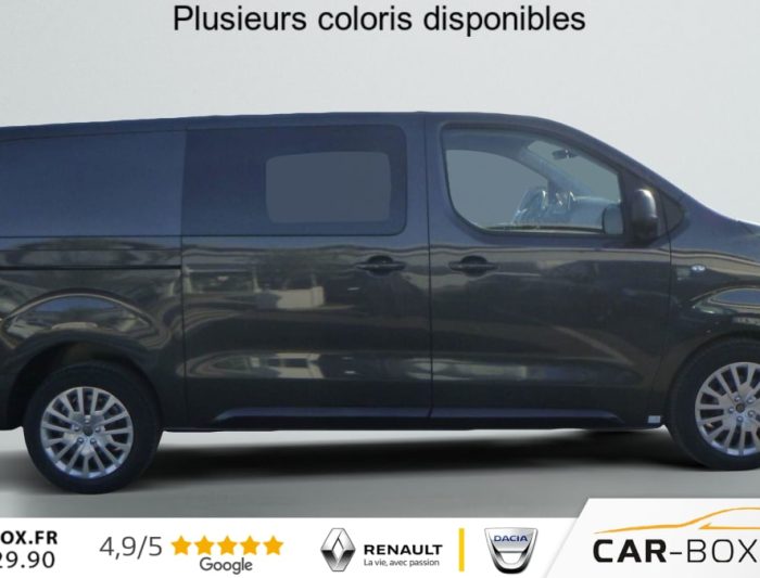 ABS, AFU, ASR, ESP avec aide au demarrage en pente, Aide au stationnement arriere, Airbags frontaux conducteur et passager, Airbags lateraux avant pour thorax en rang 1, Banquette fixe 3 places en rang 2 avec appui-tete reglables et 2 accoudoirs, position unique, Boite a gants Topbox eclairee et refrigeree, Boitier telematique (appel d'urgence et d'assistance localisees + offres de service connectes)), Charge utile majoree, Cloison pleine PVC avec vitre plexiglass, Commandes au volant du systeme audio et du regulateur-limiteur de vitesse, Coques de retroviseurs exterieurs noirs teintees masse, Detection de sous-gonflage indirecte, Eclairage d'accueil et d'accompagnement, Garnitures pavillon habitacle en rang 2, Jeu de clefs : 2 plips HF 3 boutons avec fonction selectivite, Kit de regonflage pneumatiques (Compresseur 12 V + Cartouche de produit de colmatage)., Leve vitres avant electriques impulsionnels, Pack Premium Connect (2 prises USB-C, Acces et demarrage mains libres, Aide au stationnement avant, arriere et lateral + Systeme de surveillance d'angle mort, Baguettes laterales peintes Noir Perla Nera,rangement central superieur ferme, Boucliers couleur caisse, Camera de recul 180, Climatisation automatique bizone, Combine Numerique 10'' HD couleur, Coques de retroviseurs exterieurs noires grainees, Ecran tactile 10'' HD couleur, Enjoliveur de rail de porte laterale coulissante couleur caisse, Frein de stationnement electrique, Jantes tole 17'' noires avec enjoliveurs, Navigation 3D connectee, Planche de bord avec decor Liquid Palladium, Poignees de portes exterieures peintes couleur caisse, Prise 12V espace de chargement, Projecteurs antibrouillard, Recharge smartphone sans fil, Retroviseurs exterieurs rabattables electriquement, Systeme de retrovision AR et laterale droite par 2 cameras avec affichage sur retroviseur interieur numerique, Volant en cuir) : option incluse (valeur : 3 300 Eur TTC), Pack Securite (Assistance au maintien dans la voie, Commutation automatique des feux de route, Detection inattention conducteur, Freinage automatique d'urgence avec alerte risque de collision, Reconnaissance des panneaux de vitesse et recommandation), Pack Visibilite (Allumage automatique des feux de croisement et des essuie-vitres), Plancher bois anti-derapant 9 mm avec baguette aluminium & Habillages lateraux & coffrage : option incluse (valeur : 840 Eur TTC), Poignees interieures des portes laterales coulissantes, Porte laterale coulissante droite, Porte laterale coulissante gauche : option incluse (valeur : 480 Eur TTC), Portes arriere battantes tolees 50/50 a ouverture a 180, Prise 12V (120 W max) dans la boite a gants, Projecteurs full LED avec feux diurnes a LED : option incluse (valeur : 480 Eur TTC), Regulateur limiteur de vitesse, Retroviseurs exterieurs electriques et chauffants, Revetement de sol TPO dans l'habitacle, Securite enfants mecanique, Siege conducteur individuel avec appui-tete reglable en hauteur et avec accoudoir, Siege passager individuel avec accoudoir (configuration 2 places avant) : option incluse (valeur : 0 Eur TTC), Vitres laterales fixes surteintees en rang 2, Volant reglable en hauteur et en profondeur, 6 anneaux d'arrimage repartis uniformement sur la zone de chargement