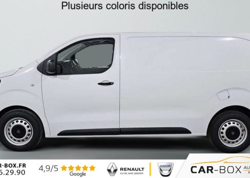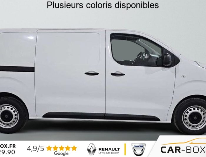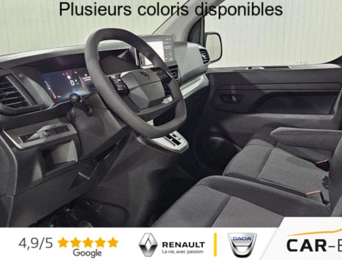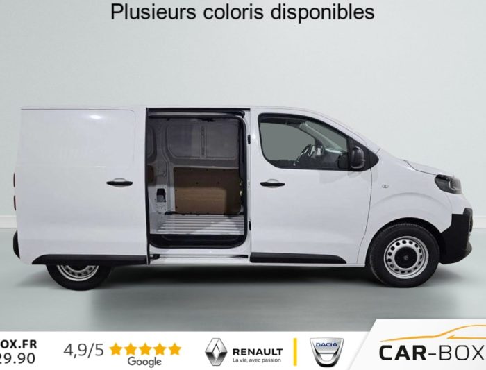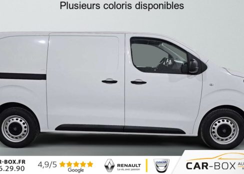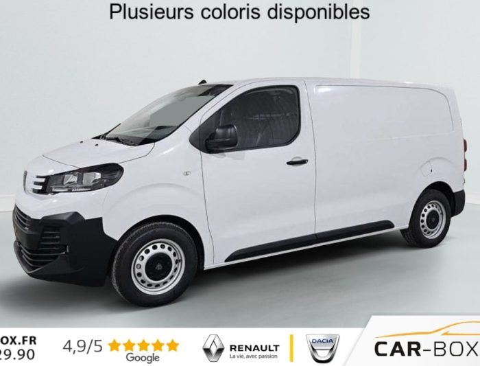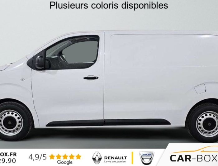 Rétroviseurs extérieurs électriques et chauffants, Détection de sous-gonflage indirecte, Régulateur limiteur de vitesse, Aide au stationnement AR, Projecteurs halogènes avec feux diurne intégré, Coques de rétroviseurs extérieurs noirs teintées masse, Airbags frontaux conducteur et passager, Banquette passager 2 places avec appuis-têtes réglables en hauteur avec rangement sous assise, Cloison pleine tôlée, Lève vitres AV électriques impulsionnels, Allumage automatique feux de croisement et des essuie-vitres AV, Climatisation manuelle régulée en température, Teinte opaque, Siège conducteur individuel avec appui-tête réglable en hauteur et avec accoudoir Réglage : longueur, inclinaison, réhausse et lombaire, ABS, AFU, ASR, ESP avec aide au démarrage en pente, 6 anneaux d'arrimage répartis uniformément sur la zone de chargement, Combiné numérique LCD noir et blanc, Jeu de clefs : 2 plips HF 3 boutons avec fonction sélectivité, Revêtement de sol TPO dans l'habitacle, Prise 12 V (120 W max) dans la boîte à gants, Pack Moduwork : Appuis-tête AV réglables en hauteur Banquette passager 2 places modulable Rangement sous assise central Tablette écritoire Les appui-tetes réglable en hauteur et le rangement sous assise centrale Trappe de charge longue : option incluse (valeur : 480 Eur TTC), Garnissage Tissu bi-ton noir-gris, Pack Visibilité Prise 12 V espace de chargement Projecteurs antibrouillard Rétroviseurs extérieurs rabattables électriquement : option incluse (valeur : 240 Eur TTC), Jantes tôle 16'' grises avec cabochon noir, Pare-brise feuilleté acoustique, Portes AR battantes tôlées 50/50 à ouverture à 180°, Poignées de portes extérieures teintés masse, Enjoliveur de rail de porte latérale coulissante teintés masse, Radio DAB Bluetooth avec écran tactile 5'' monochrome + 4 HP (2 tweeters + 2 woofers) + 1 prise USB-A, Commandes au volant du système audio et du régulateur-limiteur de vitesse, Panneaux latéraux intérieurs rangs 2 et 3 de type Isorel, Kit de dépannage provisoire de pneumatiques (Compresseur 12 V + Cartouche de produit de colmatage), Baguettes latérales noirs teintés masse, Pack Caméra Apple CarPlay et Android Auto sans fil Caméra de recul 180° Combiné Numérique 10'' HD couleur Ecran tactile 10'' HD couleur : option incluse (valeur : 960 Eur TTC), Pack Connectivité Apple CarPlay et Android Auto sans fil Combiné Numérique 10'' HD couleur Ecran tactile 10'' HD couleur Navigation 3D connectée Planche de bord avec décor Liquid Palladium Prise 12 V espace de chargement Projecteurs antibrouillard Reconnaissance vocale Rétroviseurs extérieurs rabattables électriquement : option incluse (valeur : 1 320 Eur TTC), Volant réglable en hauteur et en profondeur, Boucliers AV et AR teintés masse, Porte latérale coulissante droite