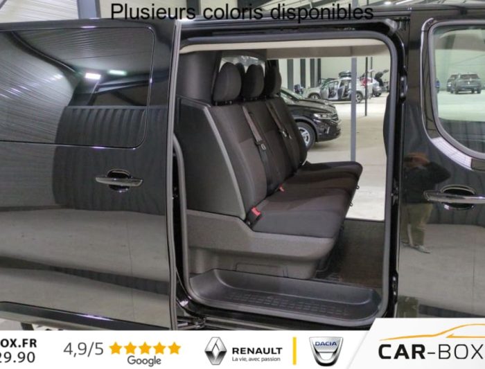 ABS, AFU, ASR, ESP avec aide au démarrage en pente, Aide au stationnement AV-AR-latéraux, Airbags frontaux conducteur et passager, Airbags latéraux tête et thorax, Allumage automatique feux de croisement et des essuie-vitres AV, Banquette fixe 3 places en rang 2, Climatisation automatique, Cloison pleine PVC avec vitre plexiglass, Combiné numérique LCD noir et blanc, Commandes au volant du système audio et du régulateur-limiteur de vitesse, Détection de sous-gonflage indirecte, Garnissage Tissu bi-ton noir-gris, Jantes tôle 17" Noir avec enjoliveurs, Lève vitres AV électriques impulsionnels, Pack Premium Connect : Volant Cuir chauffant + Rétroviseurs extérieurs rabattables électriquement + Climatisation automatique + Projecteurs antibrouillard AV + Accès et démarrage mains libres + Frein de stationnement électrique + Combiné numérique 10" + Mirror Screen (compatible avec Android Auto et Apple CarPlay) + Navigation 3D connectée + Jantes tôle 17" Noir avec enjoliveurs + Dynamic Surround View : Rétrovision numérique AR et latérale droite + Caméra de recul 180° + Aide au stationnement AV-AR-latéral + Système de surveillance d'angle mort + Ecran tactile 10" HD couleur + Chargeur smartphone sans fil + Prise 12V dans la zone de chargement + Bouclier AR demi-peint + Enjoliveurs de rail de portes latérales coulissantes couleur caisse + Baguettes latérales et coques de rétroviseurs extérieurs couleur caisse, Pack Sécurité : Freinage automatique d'urgence avec alerte risque de collision + Assistance au maintien dans la voie + Commutation automatique des feux de route + Détection inattention conducteur + Reconnaissance des panneaux de vitesse et recommandation, Pare-brise feuilleté acoustique, Portes AR battantes tôlées 50/50 à ouverture à 180°, Portes latérales coulissantes gauche-droite, Prise 12 V (120 W max) dans la boîte à gants, Projecteurs halogènes avec feux diurne intégré, Radio DAB Bluetooth avec écran tactile 5'' monochrome + 4 HP (2 tweeters + 2 woofers) + 1 prise USB-A, Régulateur limiteur de vitesse, Rétroviseurs extérieurs électriques et chauffants, Revêtement de sol TPO en rangs 1 et 2, Roue de secours homogène, Sécurité enfants mécanique, Siège conducteur individuel avec appui-tête réglable en hauteur et avec accoudoir Réglage : longueur, inclinaison, réhausse et rabattable, Siège passager individuel avec accoudoir (configuration 2 places AV), Teinte métallisée Noir Perla Nera, Vitres latérales fixes en rang 2, Vitres latérales fixes surteintées en rang 2, Volant réglable en hauteur et en profondeur, 6 anneaux d'arrimage répartis uniformément sur la zone de chargement