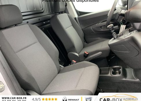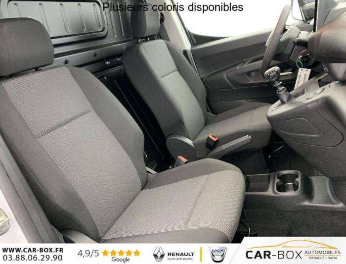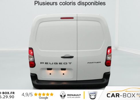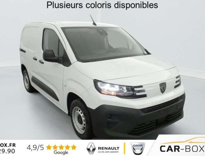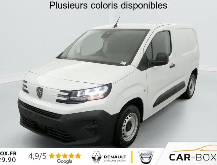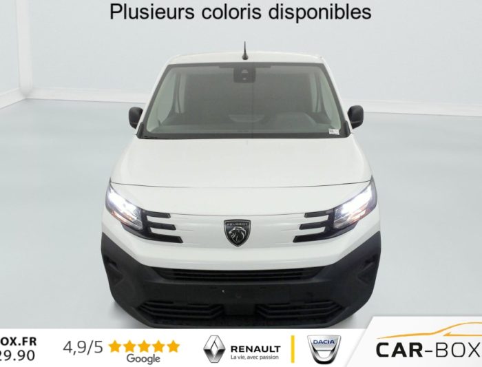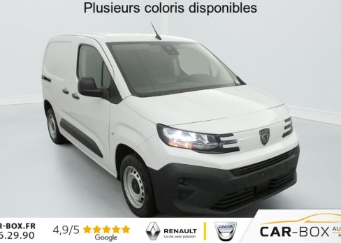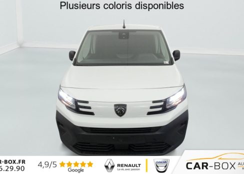 Projecteurs "Peugeot LED Technology" [LA10] : option incluse (valeur : 350 Eur TTC), Rétroviseurs extérieurs électriques et chauffants, Aide au stationnement AR, Régulateur et Limiteur de vitesse, Capucine, Prise 12V sur la planche de bord, Direction assistée, Portes AR battantes tôlées 40/60, ouverture a 180°, 6 anneaux d'arrimage au sol dans la zone de chargement, Cloison pleine fixe, ABS, AFU, ASR et ESP, Essuie-vitre AV Magic Wash, Siège conducteur avec réglage en longueur et dossier inclinable, Volant multifonction réglable en hauteur et profondeur, Climatisation manuelle, Détecteur de sous gonflage, Teinte opaque : option incluse (valeur : 0 Eur TTC), Lève vitres AV électriques, Commutation automatique des feux de route, Airbags Conducteur et Passager : Frontaux, Latéraux, Rideaux, Connect Box avec Pack SOS et assistance inclus, Côté passager : Boîte à gants fermée et réfrigérée en partie haute Boîte à gant ouverte en partie basse, Pack Safety Alerte risque collision & Freinage d'urgence Lecture des panneaux de vitesse Détection & Alerte somnolence Alerte franchissement de ligne avec correction : Alerte risque collision & Freinage d'urgence Lecture des panneaux de vitesse Détection & Alerte somnolence Alerte franchissement de ligne avec correction, Revêtement de sol en moquette dans l'habitacle, Siège passager individuel réglable en inclinaison, appuis tête réglable en hauteur, Garnissage Tissus Curitiba Triton Meltem, Radio numérique DAB sur tablette tactile 10" couleur avec Android Auto et Apple CarPlay : option incluse (valeur : 360 Eur TTC), Roue de secours homogène avec cric et manivelle (supprime le kit anticrevaison), Jante tôle 15'' si monte 15'' / Jante tôle 16'' si monte 16'' ou 17'' : option incluse (valeur : 192 Eur TTC), Condamnation centralisée avec 1 plip HF + 1 clé, Jantes tôle 15'' grises avec pneumatiques 195/65 R15 90U, Boîte de vitesse manuelle 6 rapports, Système de contrôle de la pression de pneus, Allumage automatique des feux de croisement, Aide au démarrage en pente, Porte latérale coulissante droite