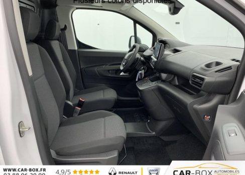 Rétroviseurs extérieurs électriques et chauffants, Aide au stationnement AR, Régulateur et Limiteur de vitesse, Capucine, Prise 12 V sur la planche de bord, Direction assistée, Portes AR battantes tôlées 40/60, ouverture à 180°, Frein de stationnement électrique, 6 anneaux d'arrimage au sol dans la zone de chargement, Cloison pleine fixe, ABS, AFU, ASR et ESP, Essuie-vitre AV Magic Wash, Siège conducteur avec réglage en longueur et dossier inclinable, Volant multifonction réglable en hauteur et profondeur, Climatisation manuelle, Détecteur de sous gonflage, Lève vitres AV électriques, Commutation automatique des feux de route, Airbags Conducteur et Passager : Frontaux, Latéraux, Rideaux, Zone de chargement : Plancher en bois 9 mm revêtu antidérapant : option incluse (valeur : 360 Eur TTC), Connect Box avec Pack SOS, Côté passager : Boîte à gants fermée et réfrigérée en partie haute Boîte à gant ouverte en partie basse, Pack Safety : Alerte risque collision & Freinage d'urgence Lecture des panneaux de vitesse Détection & Alerte somnolence Alerte franchissement de ligne avec correction, Revêtement de sol en moquette dans l'habitacle, Siège passager individuel réglable en inclinaison, appuis tête réglable en hauteur, Pack Caméra de recul & Radio numérique DAB sur écran tactile 10" couleur avec Android Auto et Apple CarPlay : option incluse (valeur : 540 Eur TTC), Roue de secours homogène : option incluse (valeur : 192 Eur TTC), Jantes tôle 16'' grises , Boîte de vitesse automatique 8 rapports, Feux EcoLed feux de route et feux de croisement, Garnissage Tissus Curitiba Triton Meltem, Allumage automatique des feux de croisement, Aide au démarrage en pente, Porte latérale coulissante droite