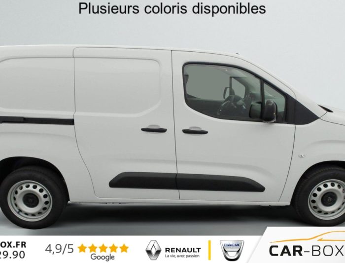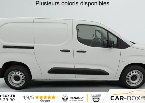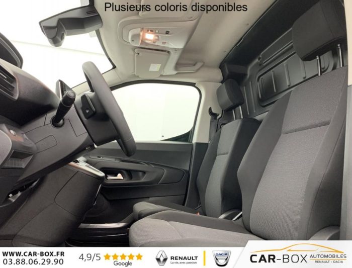 Rétroviseurs extérieurs électriques et chauffants, Aide au stationnement AR, Régulateur et Limiteur de vitesse, Capucine, Prise 12 V sur la planche de bord, Direction assistée, Portes AR battantes tôlées 40/60, ouverture à 180°, Frein de stationnement électrique, 6 anneaux d'arrimage au sol dans la zone de chargement, Cloison pleine fixe, ABS, AFU, ASR et ESP, Essuie-vitre AV Magic Wash, Siège conducteur avec réglage en longueur et dossier inclinable, Volant multifonction réglable en hauteur et profondeur, Détecteur de sous gonflage, Teinte opaque : option incluse (valeur : 0 Eur TTC), Lève vitres AV électriques, Commutation automatique des feux de route, Airbags Conducteur et Passager : Frontaux, Latéraux, Rideaux, Zone de chargement : Plancher en bois 9 mm revêtu antidérapant : option incluse (valeur : 360 Eur TTC), Connect Box avec Pack SOS, Côté passager : Boîte à gants fermée et réfrigérée en partie haute & Boîte à gant ouverte en partie basse, Pack Safety : Alerte risque collision & Freinage d'urgence Lecture des panneaux de vitesse Détection & Alerte somnolence Alerte franchissement de ligne avec correction, Revêtement de sol en moquette dans l'habitacle, Siège passager individuel réglable en inclinaison, appuis tête réglable en hauteur, Garnissage Tissus Curitiba Triton Meltem, Pack Caméra de recul & Radio numérique DAB sur écran tactile 10" couleur avec Android Auto et Apple CarPlay : option incluse (valeur : 540 Eur TTC), Pack Techno : Lève-vitres AV électriques séquentiels Projecteurs antibrouillard AV Coques de rétroviseurs extérieures Noir Brillant Recharge smartphone sans fil Essuie-vitre automatique avec capteur de pluie sur pare-brise Climatisation automatique avec filtre charbon actif Rétroviseurs rabattables électriquement Accès et démarrage mains libres (poignées de portes noires brillantes) : option incluse (valeur : 600 Eur TTC), Roue de secours homogène avec cric et manivelle (supprime le kit anticrevaison), Jante tôle 15'' si monte 15'' / Jante tôle 16'' si monte 16'' ou 17'' : option incluse (valeur : 192 Eur TTC), Condamnation centralisée avec 1 plip HF + 1 clé, Jantes tôle 16'' grises avec cabochon et pneumatique 205/60 R16 95U, Boîte de vitesse automatique 8 rapports, Système de contrôle de la pression de pneus, Allumage automatique des feux de croisement, Aide au démarrage en pente, Porte latérale coulissante droite