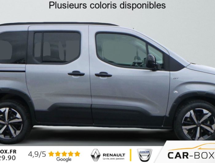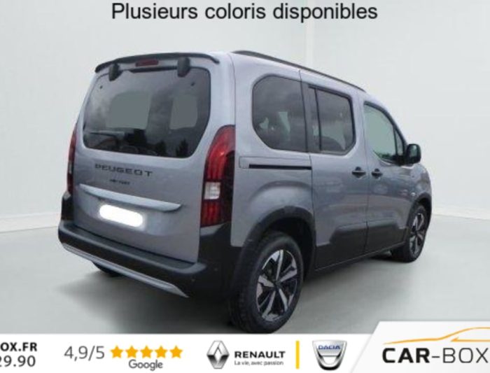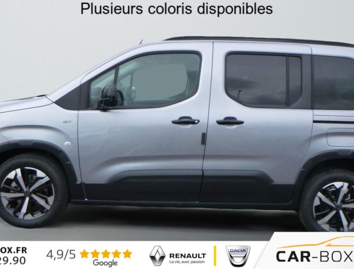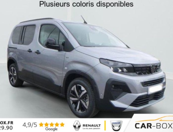 Hors frais de dossierM BlueHDi 130 S EAT8 5pl GT, diesel, gris, 28/08/2025, ABS, AFU, ESP, ASR avec aide au demarrage en pente, Aide au stationnement arriere, Airbags frontaux, lateraux avant et rideaux, Allumage automatique des feux de croisement, Banquette rang 2 escamotable 2/3 – 1/3 avec fixations Isofix, Barres de toit longitudinales Noir Brillant, Camera de recul avec Digital Visiopark 180, Climatisation automatique bi-zone, Combine numerique 10 » couleur, Commutation automatique des feux de route, Condamnation centralisee avec plip haute frequence, Coques de retroviseurs exterieurs noires vernies, Detection de sous-gonflage, Deux prises USB-C en rang 1, Essuie-vitre AV automatique, Feux de jour et Projecteurs AV Ecoled, Frein de stationnement electrique, Immatriculation definitive possible a partir du 31/11/2025 : option incluse (valeur : 0 Eur TTC), Jantes alliage 17 » avec pneumatiques 215/60 R17 100H, Leve-vitres avant et rang 2 electriques et sequentiels, Lunette AR surteintee ouvrante, degivrante avec essuie vitre, Miroirs de courtoisie eclaires, Pack Connect (Aide au stationnement avant et laterale, Navigation sur tablette tactile 10 » couleur HD avec reconnaissance vocale, Surveillance d’angles morts) : option incluse (valeur : 700 Eur TTC), Pack Safety (Alerte franchissement de ligne avec correction, Alerte Risque Collision (ARC), Detection & Alerte somnolence, Freinage d’urgence, Lecture des panneaux de vitesse), Pack Techno (Acces et demarrage mains libres, Chargeur sans fil, Grip Control avec Hill Assist Descent, Prise 220 Volts) : option incluse (valeur : 600 Eur TTC), Pavillon avec capucine, Peugeot Connect SOS & Assistance, Porte laterale coulissante droite, Porte laterale coulissante gauche, Prise USB-A de charge en rang 2, Prises 12 V a l’avant et dans le coffre, Projecteurs antibrouillard AV, Radio numerique DAB avec ecran tactile couleur personnalisable 10 » HD, Bluetooth, Mirror Screen, Rangements : Boite a gants Top Box refrigeree, Boite a gants inferieure fermee cote passager, Regulateur / Limiteur de vitesse, Retroviseurs exterieurs electriques et chauffants, Retroviseurs exterieurs rabattables electriquement, Securite enfants electrique, Siege conducteur avec reglage lombaire et accoudoir, Siege passager AV rabattable avec acoudoir, Surteintage des vitrages R2 et R3, Tablette arriere cache-bagages a 2 positions, Tablette aviation au dos des sieges AV, Vitres fixes en rang 3, Volant cuir multifonction chauffant, 3 sieges individuels en rang 2, escamotables avec fixation Isofix