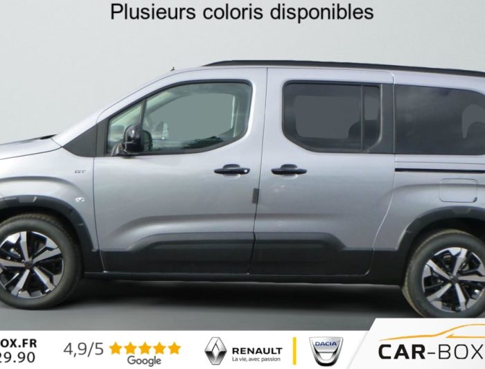 XL BlueHDi 130 S EAT8 5pl GT, diesel, gris, 28/08/2025, ABS, AFU, ESP, ASR avec aide au demarrage en pente, Aide au stationnement AR, Airbags frontaux conducteurs et passager AV, lateraux AV et rideaux, Allumage automatique des feux de croisement, Barres de toit longitudinales Noir Brillant, Camera de recul avec Digital Visiopark 180, Climatisation automatique bi-zone, Combine numerique 10 » couleur, Commutation automatique des feux de route, Condamnation centralisee avec plip haute frequence, Coques de retroviseurs exterieurs noires vernies, Detection de sous-gonflage, Deux ports USB C a l’avant, Drive mode, Eclairage d’accueil et d’accompagnement, Essuie-vitre AV automatique, Feux de jour et Projecteurs AV Ecoled, Frein de stationnement electrique, Jantes alliage 17 », Leve-vitres AV et rang 2 electriques et sequentiels, Lunette AR surteintee ouvrante, Miroir de courtoisie conducteur eclaire, Pack Safety (Alerte franchissement de ligne avec correction, Alerte Risque Collision (ARC), Detection & Alerte somnolence, Freinage d’urgence, Lecture des panneaux de vitesse), Pavillon avec capucine, Poches aumonieres au dos des sieges avants, Port USB-A de charge a l’arriere, Porte laterale coulissante droite, Porte laterale coulissante gauche, Prise 12V a l’avant, Prise 12V dans le coffre, Projecteurs antibrouillard AV, Radio numerique DAB avec ecran tactile couleur personnalisable 10 » HD, Bluetooth, Rangements : Boite a gants Top Box refrigeree, Boite a gants inferieure fermee cote passager, Regulateur / Limiteur de vitesse, Regulateur de vitesse adaptatif, Retroviseurs exterieurs electriques et chauffants, Retroviseurs exterieurs rabattables electriquement, Securite enfants electrique, Selecteur a palettes derriere le volant, Siege conducteur avec reglage lombaire et accoudoir, Siege conducteur reglable en hauteur, Siege passager AV rabattable avec acoudoir, Surteintage des vitrages R2 et R3, Tablette aviation au dos des sieges AV, Volant cuir multifonction chauffant, Volant reglable en hauteur et profondeur, Volet AR avec degivrage et essuie-vitre, 2 sieges individuels AR (en rang 3) : option incluse (valeur : 700 Eur TTC), 3 sieges individuels en rang 2, escamotables avec fixation Isofix