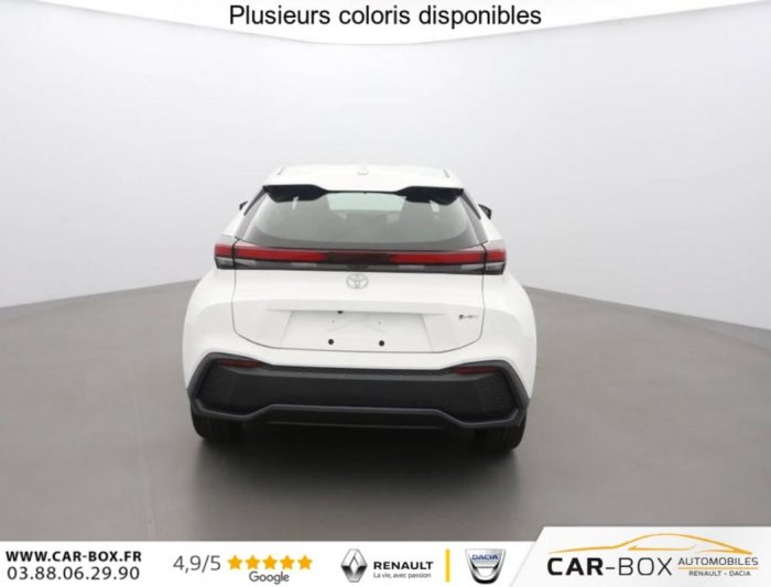 Activation automatique des feux de détresse AR (FHL), Aide à la sortie sécurisée (SEA) Le système vous aide à prévenir les accidents en surveillant les autres usagers de la route qui s?approchent par l?arrière. Lorsqu?il détecte la présence d?un cycliste ou d?un véhicule, un indicateur lumineux s?affiche dans les rétroviseurs extérieurs et sur l?écran multi-informations et une alarme sonore alerte les occupants., Alarme avec fonction antidémarrage, Avertisseur d'angles morts (BSM) Lorsque les capteurs détectent un véhicule dans votre angle mort latéral, un indicateur lumineux s?éclaire sur le rétroviseur extérieur correspondant. Si vous mettez votre clignotant afin d?indiquer un changement de voie alors qu?un véhicule est dans votre angle mort, un indicateur lumineux apparaît dans le rétroviseur correspondant pour vous avertir du danger., Caméra de recul, Carrosserie monoton, Climatisation automatique bizone, Compteur numérique personnalisable 12,3'', Ecrous antivol, Essuie-glaces AV avec détecteur de pluie, Feux antibrouillard full LED, Feux AR à LED, Frein de parking électronique, Jantes en alliage 17'', Kit de réparation anti-crevaison, Kit de sécurité, Optiques AV full-LED, Peinture non métallisée, Poignées de portes affleurantes, Rétroviseur intérieur électrochromatique, Rétroviseurs extérieurs avec éclairage au sol, Rétroviseurs extérieurs électriques, dégivrants, Sellerie tissu gris foncé, Services connectés de contrôle à distance MyToyota (inclus 4 ans), Services connectés standards MyToyota (inclus 10 ans), Système de rappel pour les sièges AR (RSRS), Système d'ouverture fermeture et démarrage sans clé ''Smart Entry & Start'', Système multimédia Toyota Smart Connect : Écran couleur tactile 8 haute définition, Connectivité Bluetooth, USB et radio, FM et DAB (digitale), Système de connectivité smartphone Apple CarPlay et Android Auto (sans fil), Services intelligents dont navigation connectée avec infotrafic en temps réel, mises à jour cartographiques, assitant vocal Hey Toyota et recherche de points d?intérêts (inclus 4 ans), Toyota Safety Sense : Système de sécurité précollision avec détection des véhicules, piétons (jour nuit) et cyclistes, actif également dans les intersections (PCS), Alerte de franchissement de ligne avec aide au maintien dans la file, assistant de trajectoire et détecteur de fatigue (LTA), Régulateur de vitesse adaptatif intelligent allant jusqu'à l'arrêt (ACC), Lecture des panneaux de signalisation avec limiteur de vitesse (RSA) et Gestion automatique des feux de route (AHB), Système d?arrêt d?urgence autonome (EDSS), Vitres AV AR électriques, 2 ports USB-C, 6 HP, 8 airbags