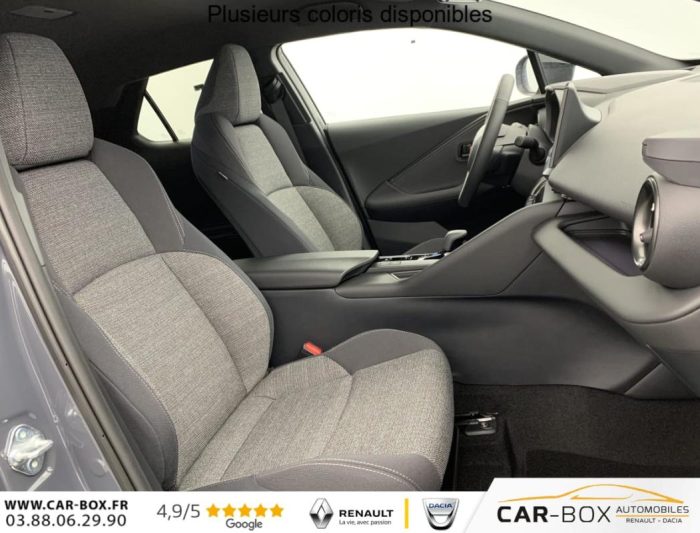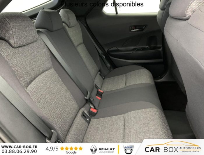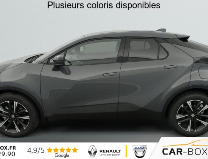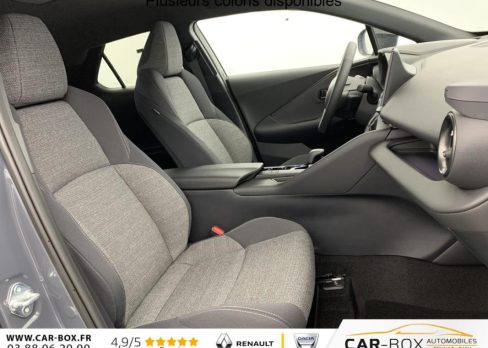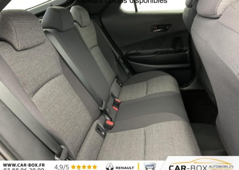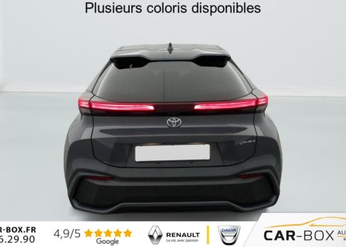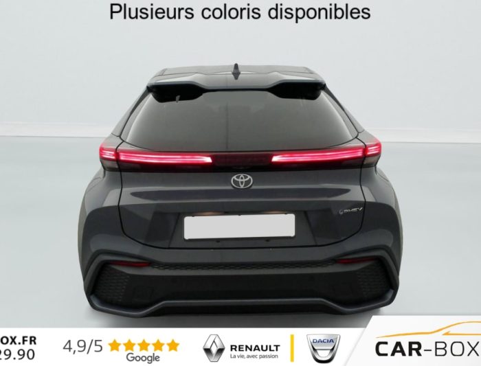 Chargeur de smartphone à induction : option incluse (valeur : 200 Eur TTC), Optiques AV LED avec signature lumineuse Premium : option incluse (valeur : 350 Eur TTC), Système multimédia Toyota Smart Connect Plus : Ecran couleur tactile 12,3" haute définition, Connectivité Bluetooth, USB et radio FM et DAB (digitale) , Système de connectivité smartphone Apple CarPlay et Android Auto (sans fil), Navigation satellitaire embarquée : option incluse (valeur : 850 Eur TTC), Caméra de recul, Kit de réparation anti-crevaison, Lunette et vitres AR surteintées, 6 HP, ABS, Electrostabilisateur programmé (ESP), Sièges AV chauffants, Carrosserie monoton, Direction assistée, Système d'appel d'urgence automatique "E-Call", Siège passager réglable manuellement en hauteur, Volant chauffant, Siège conducteur réglable en hauteur manuellement, Alarme avec fonction antidémarrage, Système d'ouverture/fermeture et démarrage sans clé "Smart Entry & Start", Compteur numérique personnalisable 12,3", Peinture métallisée : option incluse (valeur : 800 Eur TTC), Frein de parking électronique, Rétroviseurs extérieurs avec éclairage au sol, Siège conducteur avec support lombaire électrique, Feux Full LED (AV/AR et antibrouillard), Poignées de portes affleurantes, 8 airbags, Activation automatique des feux de détresse AR (FHL), Système de rappel pour les sièges AR (RSRS), Toyota Safety Sense : Système de sécurité précollision avec détection des véhicules, piétons (jour/nuit) et cyclistes, actif également dans les intersections (PCS), Alerte de franchissement de ligne avec aide au maintien dans la file, assistant de trajectoire et détecteur de fatigue (LTA), Régulateur de vitesse adaptatif intelligent allant jusqu'à l'arrêt (ACC), Lecture des panneaux de signalisation avec limiteur de vitesse (RSA) et Gestion automatique des feux de route (AHB), Système d'arrêt d'urgence autonome (EDSS), Rétroviseurs extérieurs électriques, rabattables automatiquement et dégivrants, Radars de stationnement AV et AR (PKSB) Lorsque vous roulez à basse vitesse ou en marche AR, les radars permettent de détecter des objets statiques (obstacles, murs...) ou en mouvement (véhicules traversant à l'AR), le système de freinage de l'aide au stationnement fournit alors une assistance pour réduire l'impact., 3 ports USB-C, Coffre avec plancher surélevé, Câble de recharge Mode 2 (Type 2) 1,8 kW / 6 mètres (domestique), Câble de recharge Mode 3 (Type 2) 22kW / 7,5 mètres (Wallbox), Vitrage feuilleté insonorisé, Assistant visuel de conduite (DMC) Ce système utilise une caméra située audessus du volant pour surveiller le niveau d'alerte et l'état du conducteur. Le système envoie un avertissement s'il détecte un état anormal, comme de la fatigue. Ces activités sont utilisées pour améliorer la performance du système d'arrêt d'urgence autonome (EDSS) à travers la détection précoce de la distraction., Avertisseur de circulation AR (RCTA) Cet avertisseur vous permet grâce aux capteurs d'angles morts de repérer un véhicule arrivant de côté quand vous sortez en marche AR d'une place de parking. S'il détecte un risque de collision, le système freine automatiquement et stoppe le véhicule., Aide à la sortie sécurisée (SEA) Le système vous aide à prévenir les accidents en surveillant les autres usagers de la route qui s'approchent par l'arrière. Lorsqu'il détecte la présence d'un cycliste ou d'un véhicule, un indicateur lumineux s'affiche dans les rétroviseurs extérieurs et sur l'écran multi-informations et une alarme sonore alerte les occupants., Avertisseur d'angles morts (BSM) Lorsque les capteurs détectent un véhicule dans votre angle mort latéral, un indicateur lumineux s'éclaire sur le rétroviseur extérieur correspondant. Si vous mettez votre clignotant afin d'indiquer un changement de voie alors qu'un véhicule est dans votre angle mort, un indicateur lumineux apparaît dans le rétroviseur correspondant pour vous avertir du danger., Optiques AV full-LED, Eclairage d'ambiance intérieur monochrome éclairage non personnalisable et non interactif : cave à pieds / rangement passager, Montants B de portes noir laqué, Volant gainé de matière synthétique, Boîte automatique à variation continue, Contrôle de la pression des pneus des roues, Contrôle de traction (TCS), Jantes en alliage 18" bi-ton gris anthracite mat et aluminium, Sellerie tissu bi-ton gris anthracite avec surpiqûres blanches, Rétroviseur intérieur électrochromatique, Climatisation automatique bizone, Essuie-glaces AV avec détecteur de pluie, Vitres AV/AR électriques