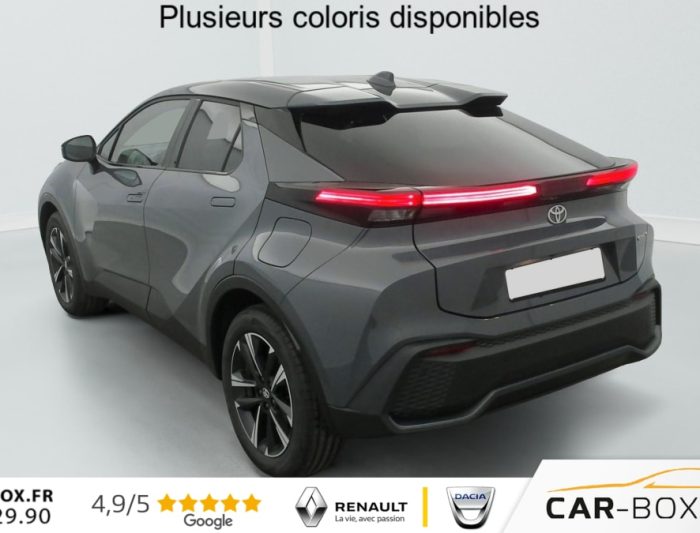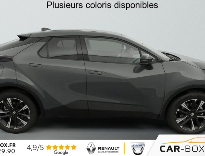 Hors frais de dossierHybride Rechargeable 225 Design, hybride, noir, 30/01/2026, Chargeur de smartphone à induction : option incluse (valeur : 200 Eur TTC), Optiques AV LED avec signature lumineuse Premium : option incluse (valeur : 350 Eur TTC), Système multimédia Toyota Smart Connect Plus : Ecran couleur tactile 12, 3" haute définition, Connectivité Bluetooth, USB et radio FM et DAB (digitale), Système de connectivité smartphone Apple CarPlay et Android Auto (sans fil), Navigation satellitaire embarquée : option incluse (valeur : 850 Eur TTC), Caméra de recul, Kit de réparation anti-crevaison, Lunette et vitres AR surteintées, 6 HP, ABS, Electrostabilisateur programmé (ESP), Sièges AV chauffants, Carrosserie monoton, Direction assistée, Système d’appel d’urgence automatique "E-Call", Siège passager réglable manuellement en hauteur, Volant chauffant, Siège conducteur réglable en hauteur manuellement, Alarme avec fonction antidémarrage, Système d’ouverture/fermeture et démarrage sans clé "Smart Entry & Start", Compteur numérique personnalisable 12, 3", Peinture métallisée : option incluse (valeur : 800 Eur TTC), Frein de parking électronique, Rétroviseurs extérieurs avec éclairage au sol, Siège conducteur avec support lombaire électrique, Feux Full LED (AV/AR et antibrouillard), Poignées de portes affleurantes, 8 airbags, Activation automatique des feux de détresse AR (FHL), Système de rappel pour les sièges AR (RSRS), Toyota Safety Sense : Système de sécurité précollision avec détection des véhicules, piétons (jour/nuit) et cyclistes, actif également dans les intersections (PCS), Alerte de franchissement de ligne avec aide au maintien dans la file, assistant de trajectoire et détecteur de fatigue (LTA), Régulateur de vitesse adaptatif intelligent allant jusqu’à l’arrêt (ACC), Lecture des panneaux de signalisation avec limiteur de vitesse (RSA) et Gestion automatique des feux de route (AHB), Système d’arrêt d’urgence autonome (EDSS), Rétroviseurs extérieurs électriques, rabattables automatiquement et dégivrants, Radars de stationnement AV et AR (PKSB) Lorsque vous roulez à basse vitesse ou en marche AR, les radars permettent de détecter des objets statiques (obstacles, murs…) ou en mouvement (véhicules traversant à l’AR), le système de freinage de l’aide au stationnement fournit alors une assistance pour réduire l’impact., 3 ports USB-C, Coffre avec plancher surélevé, Câble de recharge Mode 2 (Type 2) 1, 8 kW / 6 mètres (domestique), Câble de recharge Mode 3 (Type 2) 22kW / 7, 5 mètres (Wallbox), Vitrage feuilleté insonorisé, Assistant visuel de conduite (DMC) Ce système utilise une caméra située audessus du volant pour surveiller le niveau d’alerte et l’état du conducteur. Le système envoie un avertissement s’il détecte un état anormal, comme de la fatigue. Ces activités sont utilisées pour améliorer la performance du système d’arrêt d’urgence autonome (EDSS) à travers la détection précoce de la distraction., Avertisseur de circulation AR (RCTA) Cet avertisseur vous permet grâce aux capteurs d’angles morts de repérer un véhicule arrivant de côté quand vous sortez en marche AR d’une place de parking. S’il détecte un risque de collision, le système freine automatiquement et stoppe le véhicule., Aide à la sortie sécurisée (SEA) Le système vous aide à prévenir les accidents en surveillant les autres usagers de la route qui s’approchent par l’arrière. Lorsqu’il détecte la présence d’un cycliste ou d’un véhicule, un indicateur lumineux s’affiche dans les rétroviseurs extérieurs et sur l’écran multi-informations et une alarme sonore alerte les occupants., Avertisseur d’angles morts (BSM) Lorsque les capteurs détectent un véhicule dans votre angle mort latéral, un indicateur lumineux s’éclaire sur le rétroviseur extérieur correspondant. Si vous mettez votre clignotant afin d’indiquer un changement de voie alors qu’un véhicule est dans votre angle mort, un indicateur lumineux apparaît dans le rétroviseur correspondant pour vous avertir du danger., Optiques AV full-LED, Eclairage d’ambiance intérieur monochrome éclairage non personnalisable et non interactif : cave à pieds / rangement passager, Montants B de portes noir laqué, Volant gainé de matière synthétique, Boîte automatique à variation continue, Contrôle de la pression des pneus des roues, Contrôle de traction (TCS), Jantes en alliage 18" bi-ton gris anthracite mat et aluminium, Sellerie tissu bi-ton gris anthracite avec surpiqûres blanches, Rétroviseur intérieur électrochromatique, Climatisation automatique bizone, Essuie-glaces AV avec détecteur de pluie, Vitres AV/AR électriques