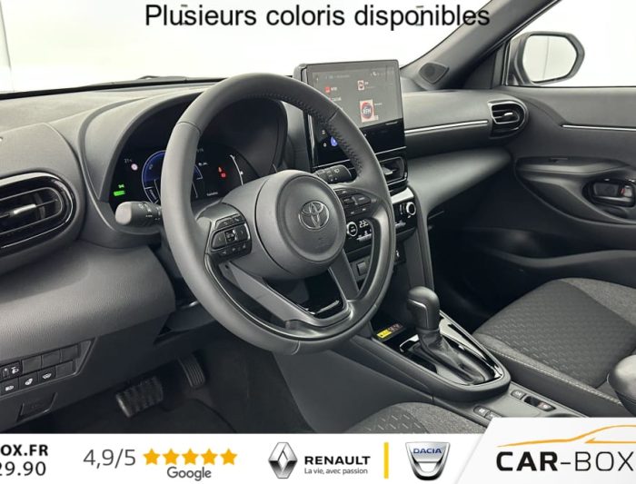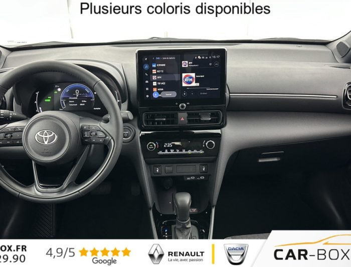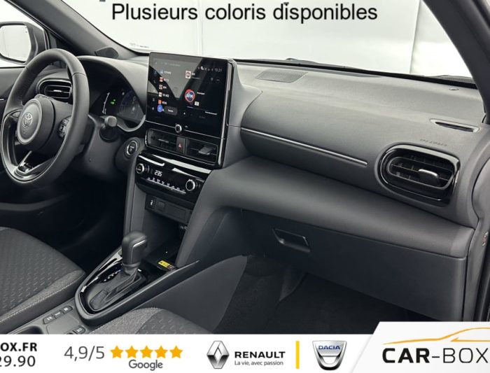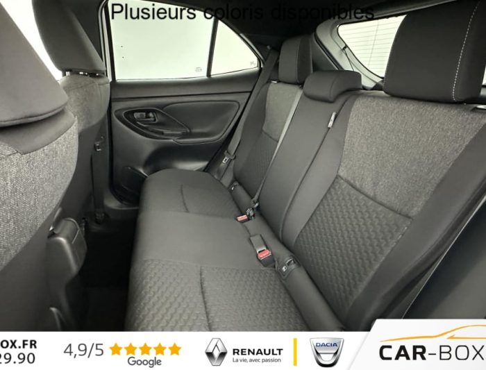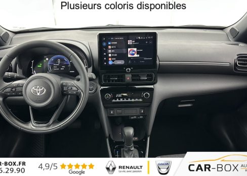 Caméra de recul, Chargeur smartphone à induction : : option incluse (valeur : 200 Eur TTC), Ciel de toit noir, Clignotants arrière à LED séquentiels, Climatisation automatique, Connectivité smartphone sans fil (Apple CarPlay & Android Auto), Double plancher de coffre, Écran conducteur TFT 7”, Essuie-glaces avec détecteur de pluie, Feux antibrouillard avant à LED, Feux avant et arrière full LED, Frein de parking électronique, Jantes alliage 17”, Pack hiver : : option incluse (valeur : 500 Eur TTC), Peinture métallisée : : option incluse (valeur : 650 Eur TTC), Rails de toit noirs, Rétroviseur intérieur électrochromatique, Rétroviseurs extérieurs rabattables électriquement, Seuils de porte en aluminium, Siège passager réglable en hauteur, Système d'appel d'urgence automatique “E-Call“, Système d'ouverture / fermeture et démarrage sans clé, Système Toyota Smart Connect sur écran tacile 10.5" (avec Navigation sur activation), Vitres et lunette arrière surteintées, Volant cuir