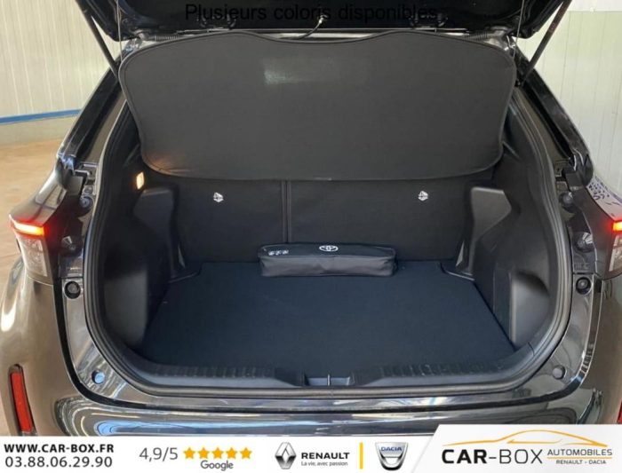 Hors frais de dossierHybride MY22 116h 2WD Design, hybride, noir, 19/09/2023, Caméra de recul, Vitres et lunette AR surteintées, Double plancher du coffre, Sellerie tissu gris, 6 HP, Allumage automatique des feux, Antenne de toit type requin, Siège passager réglable en hauteur, Climatisation automatique, Système d’appel d’urgence automatique "E-Call", Rails de toit noir, Services connectés MyT, Ecran TFT 4, 2", Toyota Safety Sense, Peinture métallisée monoton : option incluse (valeur : 600 Eur TTC), Rétroviseurs extérieurs rabattables électriquement et chauffants, Système d’ouverture/fermeture et démarrage sans clé "Smart Entry & Start", Clignotants LED séquentiels, Pack Cargo : Attaches de coffre Avertisseur d’angles morts Avertisseur de circulation AR (RCTA) Double plancher du coffre modulable Radars de stationnement AV/AR Sièges AR rabattables 40:20:40 Sièges AV chauffants : option incluse (valeur : 800 Eur TTC), Connectivité Apple CarPlay et Android Auto sans fil, Sièges AR rabattables 40:60, Ecran couleur tactile multifonction 9", Feux Full LED (AV/AR), Frein de parking électronique, Jantes alliage 17" (5 doubles-branches), Feux antibrouillard full LED, Système multimédia Toyota Smart Connect : écran tactile 9", navigation connectée et contrôle à distance via l’application MyT (verrouiller/déverrouiller, relancer la climatisation et retrouver ma voiture avec allumage des feux clignotants) et 4 ans de mis, Peinture non métallisée, Volant en cuir, Détecteur de pluie, Système de fixations ISOFIX aux places latérales AR, Rétroviseur intérieur électrochromatique, Vitres AV/AR électriques