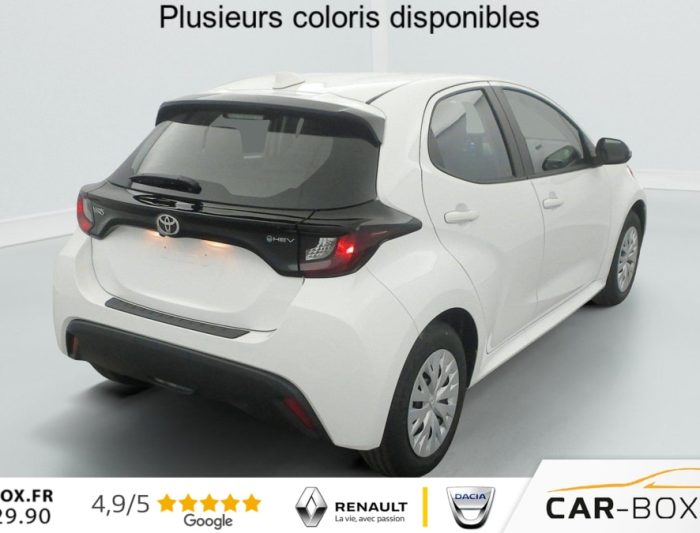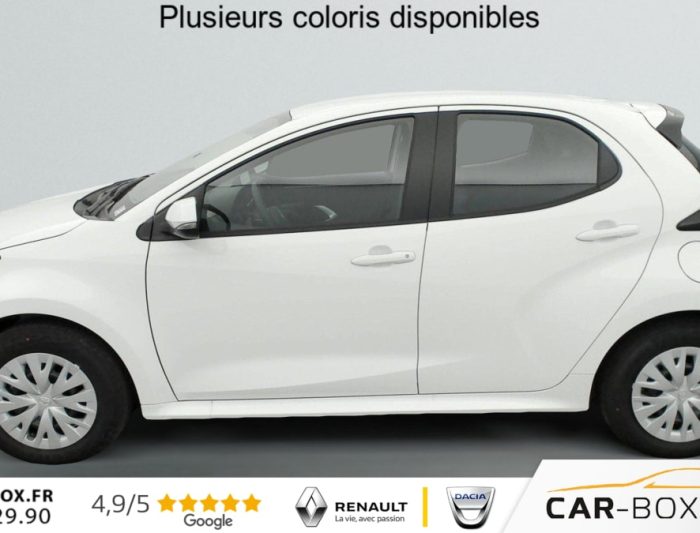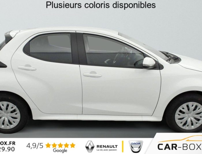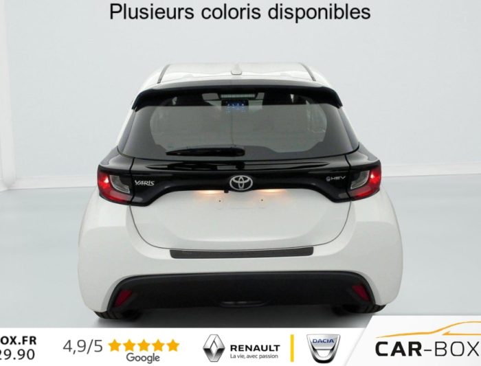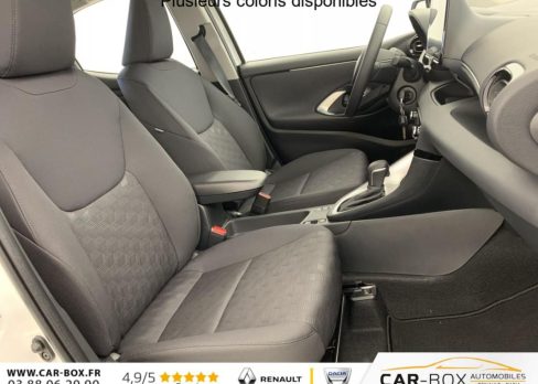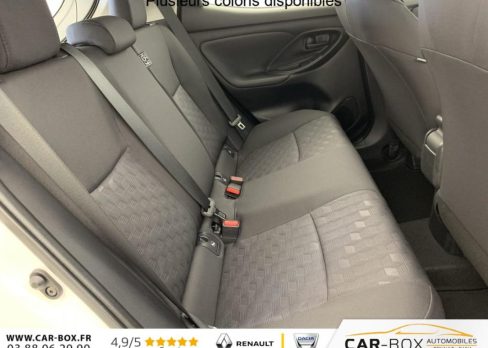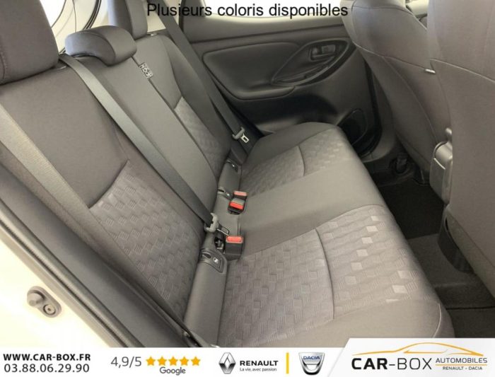 Hors frais de dossierHYBRIDE 116h Dynamic, hybride, blanc, 14/11/2024, Système de fixation ISOFIX aux places AR, Caméra de recul, Tableau de bord moussé, Double plancher du coffre, Feux de jour à LED, Frein de parking électrique, ABS, Allumage automatique des feux, Airbag conducteur et passager, Airbags latéraux, Enjoliveurs 15", Rétroviseurs extérieurs électriques chauffants, Electrostabilisateur programmé (ESP), Climatisation automatique, Antenne de toit aileron de requin, Direction assistée, Système d’appel d’urgence automatique "E-Call", Ciel de toit gris clair, Accoudoir central, Airbags centraux, Feux de route halogènes, Peinture non métallisée, Sellerie tissu noir, Système de connectivité smartphone sans fil Apple CarPlay et Android Auto, Toyota T-MATE / Toyota Safety Sense Système de sécurité précollision avec détection des véhicules, piétons et cyclistes, actif également dans les intersections+Alerte de franchissement de ligne avec aide au maintien dans la file, assistant de trajectoire et détecteur de fatigue+Lecture des panneaux de signalisation avec limiteur de vitesse+Gestion automatique des feux de route+Régulateur de vitesse adaptatif intelligent+Système d’arrêt d’urgence autonome +Système d’assistance à la conduite proactive+Suppression de l’acceleration, Rétroviseurs extérieurs couleur carrosserie, Système multimédia Toyota Touch 3 écran tactile 9", radio digitale (DAB), Bluetooth, 2 ports USB-C et 6 hp, Boîte automatique à variation continue, Contrôle de la pression des pneus des roues, Contrôle de traction (TCS), Verrouillage centralisé, Volant en cuir, Banquette AR rabattable 60/40, Détecteur de pluie, Rétroviseur intérieur électrochromatique, Vitres AV/AR électriques