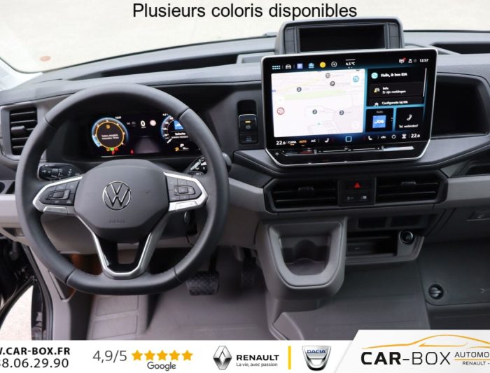 Hors frais de dossier35 Fourgon L3H2 3640mm 2.0 TDI 177 hp Aut., diesel, noir, 06/02/2025, ABS, Accoudoir central, Aide au maintien en côte, Airbag conducteur, Airbag passager, Appel d’urgence, Apple CarPlay / Android Auto, Assistance au freinage d’urgence, Assistance feux de route, Assistant maintien de voie, Bluetooth, Boîte de vitesse automatique, Caméra de recul, Caméra de recul "Rear View" (vue arrière), Capteur d’aide au stationnement arrière, Capteur d’aide au stationnement avant, Capteur de pluie, Charnières de porte renforcées côté conducteur, Chauffage du siège pour le conducteur et le passager – réglable séparément, Climatisation automatique, Climatisation "Climatronic, Commande vocale, Console supplémentaire sur le tableau de bord avec emplacement 1-DIN et préparation pour 4 boutons supplémentaires, Contribution environnementale pour le recyclage des véhicules (FEBELAUTO), Contrôle de traction, Démarrage sans clé, Détecteur de fatigue, Eclairage de marche à l’avant – commutable, Écran tactile, Enjoliveurs de roues de 16 pouces, ESP, Feux anti-brouillard, Feux de jour à LED, Frein de stationnement électronique, Immobilisateur, Informations trafic, Jantes en acier 6.5 J x 16 – en noir, Jauge de température extérieure, Kit de dépannage (kit de réparation des pneus : compresseur 12V et produit d’étanchéité) SANS roue de secours, Limitateur de vitesse, Lumières automatiques, Marche arrière sur toute la largeur – pas possible avec attelage de remorque, Ordinateur de bord, Pack d’assistance Basic, Pack d’assistance Professionnel, Pack éclairage et visibilité "Plus", Pack fumeurs, Pack hiver, Pack Sound & Cool, Palettes de changement de vitesse, Pare-brise chauffant, Peinture métallisée, Phares à LED avec feux de jour à LED, Phares antibrouillard avec éclairage statique de virage, Phares LED, Plaque intermédiaire entre le pare-chocs et la calandre dans la couleur de la carrosserie, Pneus toutes saisons, Pneus toutes saisons, Pneus 235/65 R 16 C 115/113 R – résistance au roulement optimisée, Poignées d’entrée sur les montants arrière, Point d’accès Wi-Fi/WiFi, Porte coulissante à droite, Préparation pour attelage de remorque (y compris stabilisateur de remorque) avec faisceau de câbles et unité de commande, Préparation pour l’éclairage de l’espace de chargement. Les 4 spots LED d’origine sont supprimés., Préparation "VW Connect" & "VW Connect Plus", Prise 230V dans le cadre du siège conducteur (puissance 300W), Puissance de direction, Radio DAB, Réception radio numérique (DAB+), Reconnaissance des panneaux, Régulateur de vitesse, Réservoir de carburant diesel plus avec capteur d’eau, Rétroviseurs à réglage électrique, Rétroviseurs chauffants, Rétroviseurs extérieurs réglables électriquement, chauffants et rabattables, Sellerie en cuir artificiel – design "Mesh, Siège chauffant avant, Siège conducteur Ergo Comfort, Sièges avec support lombaire manuel, Surveillance de la pression des pneus, Système d’alarme avec avertisseur sonore de recul – surveillance intérieure – et alarme de remorquage (pour le Crafter avec cloison de séparation), Système de démarrage/arrêt, Système de navigation, Système de navigation "Discover Pro" avec écran tactile 12" – 4 haut-parleurs – et connexion pour téléphone portable, USB, USB-C vers USB-C, Verrouillage centralisé, Vitres électriques avant, Volant en cuir, Volant multifonctionnel, 2 prises 12V dans l’espace passager/cargo (une sur le pilier C – une sur le pilier D)
