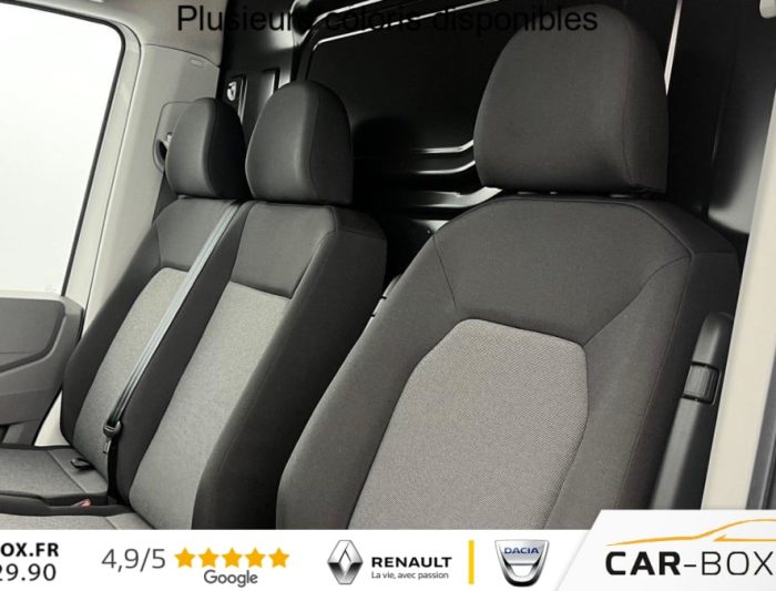 Pare-brise en verre feuilleté athermique, Pneus été, Phares antibrouillard y compris feu de bifurcation : option incluse (valeur : 347 Eur TTC), Rétroviseur extérieur, réglable et dégivrant électriquement, Feux de position latéraux, Outillage de bord avec cric, Protection centrale de roue, Pneus 235/65 R 16 C 115/113 R, à résistance au roulement optimisée : option incluse (valeur : 0 Eur TTC), Mesures d'insonorisation de l'intérieur Plus, Charnières pour les portes AR à vantaux avec angle d'ouverture agrandi (270° max) : option incluse (valeur : 650 Eur TTC), Repérage des panneaux de signalisation, Réservoir de carburant avec volume de réservoir de 75 l, Sellerie en tissu, dessin "Austin", Assistant de démarrage en côte, Oeillets d'arrimage pour fixation de la charge, Phares doubles halogènes, Portes AR à vantaux sans baies de fenêtre, Garniture de plancher dans la cabine en caoutchouc, Poignée sur la paroi dans le compartiment de charge, Alternateur triphasé 140 A, Batterie 420 A (70 Ah), Prise 12 V et 4 porte-gobelets dans le tableau de bord, 2 prises 12 V dans le compartiment de chargement : option incluse (valeur : 82 Eur TTC), Pack vide-poches 2 : Rangements de pavillon au format A4 avec 2 emplacements 1 DIN et lampe de lecture, Poids Total Admissible 3 500 kg, Eclairage dans le compartiment de charge : 4 spots à LED, Système d'aide au maintien de la trajectoire en cas de vent latéral (Side Wind Assist), Roue de secours avec cric et outil de démontage de roue, Cloison de séparation pleine, Interface Bluetooth pour téléphone portable, Siège confort "Plus" à gauche, dans la 1ère rangée de sièges (réglage de la longueur, de la hauteur et de l'inclinaison de l'assise, du soutien lombaire et accoudoirs des deux côtés) : option incluse (valeur : -252 Eur TTC), Galerie de toit avec 2 emplacements de rangements et lampes de lecture pour chaque siège, Digital Cockpit, Freins à disque AV 16", Climatisation "Climatic" mono zone avec réglage manuel, Protection latérales de la carrosserie contre les petits chocs du quotidien, Marchepied à l'entrée de l'espace de chargement, à AR, Vide poche en partie centrale du tableau de bord avec espaces de rangement en partie haute, Vibreur et témoin d'alerte pour ceinture du conducteur et du passager AV non attachée, Affichage de la pression et de la température des pneus, Pare-chocs AV dans la couleur de la carrosserie en partie haute, Poignées d'accès sur les montants AR Poignées dédiées à la porte latérale, 2 télécommandes de déverrouillage des portes avec clé escamotable, Rangements de pavillon au-dessus du pare-brise avec 2 emplacements et illumination individuelle pour chaque siège, 4 jantes en acier 6 1/2 J x 16 avec charge de 1050 kg, en argent, Paroi entre la cabine et le compartiment de charge parfaitement verticale, Frein de stationnement électronique, Banquette double pour 2 passagers en plus du conducteur : option incluse (valeur : -52 Eur TTC), Porte coulissante à droite dans le compartiment charge, Rétroviseurs extérieurs électriques gauche et droit avec clignotant intégré, zone grand angle, Verrouillage centralisé avec radiocommande et commande intérieure, Pack Technique : Système d'aide au stationnement AV/AR Assistant de maintien sur la voie "Lane Assist" Détecteur de fatigue Système de surveillance périmétrique Front Assist avec fonction de freinage d'urgence City Volant multifonction (3 branches) Eclairage de jour avec allumage automatique des projecteurs, fonction "Leaving home" et fonction "Coming home" manuelle Fonctionnement intermittent des essuie glaces, avec détecteur de lumière et de pluie Airbag pour conducteur et passager AV avec désactivation de l'airbag du passager AV Limiteur de vitesse, Pack Assistance : Limiteur de vitesse et limiteur de vitesse prédictif Régulateur de vitesse électronique, Interface mobile confort avec fonction de charge à induction, Préparation VW Connect et VW Connect Plus sans navigation (3 ans) pour (Composition Media), Autoradio "Composition" avec écran tactile couleur "10" 2 interfaces USB-C dans le tableau de bord avec puissance de recharge jusqu'à 45 W, 4 HP: 2 HP d'aigus, 2 HP de graves, Infotainment 10,4", Téléphonie confort, sans raccordement à l'antenne extérieure, Feux de jour avec allumage automatique des projecteurs et fonctions Coming Home et Leaving Home automatiques + Fonctionnement intermittent des essuie-glace, avec détecteur de lumière et de pluie : option incluse (valeur : 336 Eur TTC), Port de chargement USB-C pour appareils mobiles dans la base du rétroviseur sur le pare-brise, App-Connect sans fil, Poignées dédiées à la porte latérale, Système multimédia "Composition Media" avec écran tactile 10'", Verrouillage centralisé avec système de démarrage sans clé «Keyless Start» sans verrouillage sécurisé, Ordinateur de bord, Eclairage diurne