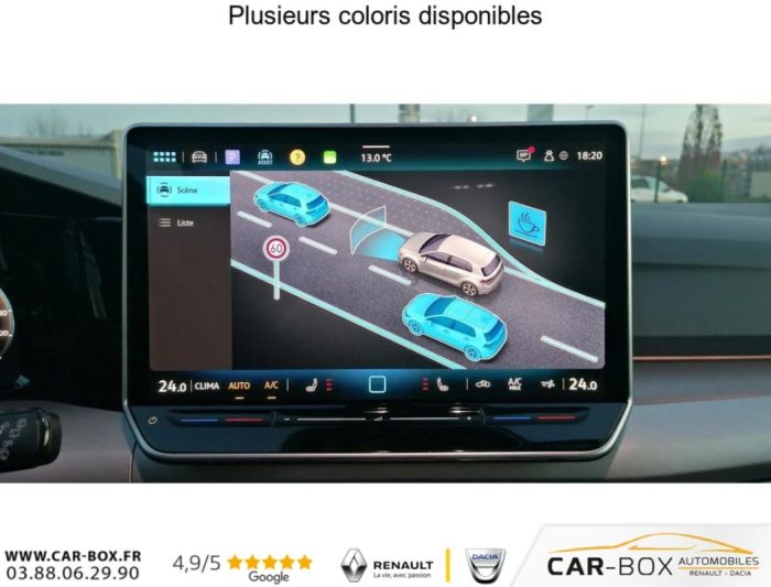 Accoudoir avant, AFIL (avertisseur de franchissement de ligne intelligent), Allumage automatique des feux, Bluetooth, Camera de recul, Climatisation automatique tri-zones, Digital cockpit (affichage digital du compteur), Eclairage led dambiance multicolore, Ecran tactile, Fermeture centralisée, Feux avant Led, Front assist (aide au freinage durgence), Jantes en alliage léger 17? ?Nottingham?, Navigation GPS via Apple Carplay et Android auto, Ordinateur de bord, Palettes au volant, Peinture métallisée, Prise USB, Radars de stationnement avant et arrière, Régulateur de vitesse adaptatif (ACC), Rétroviseurs rabattables électriquement et dégivrants, Roue de secours galette, Sieges chauffants, Start&Stop, Système de verrouillage et de démarrage sans clé Keyless Access, Vitres arrière surteintées, Vitres avant et arrières électriques, Volant chauffant, Volant cuir, Volant multifonctions, Volant réglable en profondeur et en hauteur