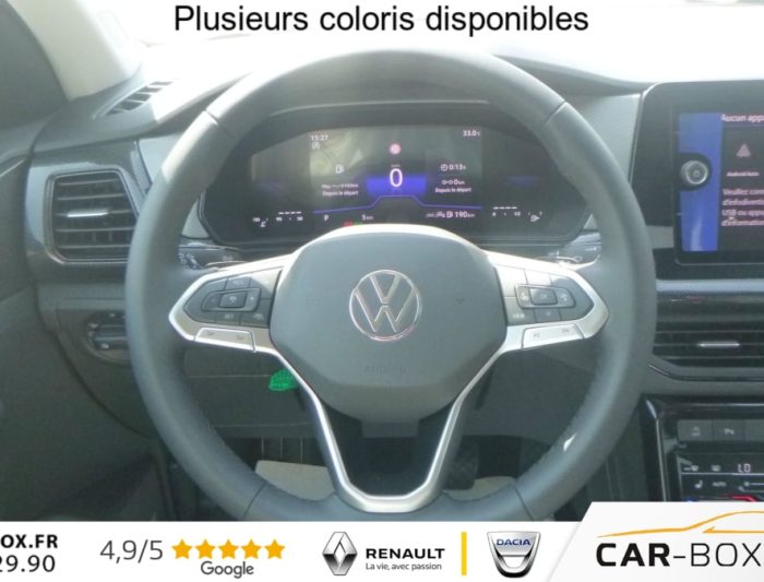 Hors frais de dossier1.0 TSI 116 Start Stop DSG7 Life, essence, gris, 13/08/2025, Accoudoir central AV, Aide au demarrage en cote »Hill-Hold », Aide au stationnement AR, Airbags frontaux AV conducteur et passager, Airbags lateraux AV, Airbags rideaux AV/AR, Alerte de perte de pression des pneus, App-Connect sans fil, affichage et controle via l’ecran tactile de la voiture du contenu, Appuis-tete AR (3) et ceintures de securite 3 points (3) sur la banquette AR, Assistant de maintien sur la voie Lane Assist, Avertisseur de non bouclage des ceintures de securite, Banquette AR coulissante sur 14 cm, Boite de rangement sous siege passager AV, Camera, Capteur de pluie avec essuie-glace automatique, Ceintures de securite 3 points AV a enrouleur avec pretensionneurs, reglables en hauteur, Chargeur de smartphone par induction, Climatisation automatique »Climatronic » bi-zone avec filtre anti-allergene : option incluse (valeur : 450 Eur TTC), Correcteur electronique de trajectoire ESP, systeme d’antiblocage de roues ABS, EDL, EDTC, Digital Cockpit : combine d’instruments entierement digital de 8 », Direction assistee, Dossier de banquette AR rabattable 2/3 -1/3, E-call service: Appel d’urgence manuel ou automatique, Essuie-glace AR, Fatigue Detection : systeme de detection de fatigue du conducteur qui analyse le comportement du, Feux AR de brouillard, Interface telephone Bluetooth, ISOFIX, Jantes alliage leger 6, 5Jx17 » »Bangalore », pneumatiques 205/55 R17 : option incluse (valeur : 610 Eur TTC), Lane Assist: Assistant de maintien de trajectoire qui corrige, dans la limite du systeme, le, Miroir de courtoisie sur les pare-soleil, Ordinateur de bord multifonction, Pack fumeur : cendrier et allume cigare : option incluse (valeur : 0 Eur TTC), Park Pilot: radars d’aide au stationnement AV/AR avec signaux acoustiques, Poignee de frein a main en cuir, Pommeau du levier de vitesse cuir, Preparation pour »VW Connect » et »VW Connect Plus », Projecteurs principaux LED, Rampes de pavillon noires, Reception radio numerique DAB+, Regulateur de vitesse adaptatif ACC avec limiteur de vitesse, Retroviseur interieur jour/nuit automatique, Retroviseurs exterieurs reglables, rabattables et degivrables electriquement, Roue de secours a usage temporaire : option incluse (valeur : 0 Eur TTC), Siege passager AV rabattable, Sieges AV chauffants : option incluse (valeur : 410 Eur TTC), Sieges conducteur et passager reglables en hauteur, Systeme Audio & Infotainment »Ready 2 Discover » avec »Services de streaming et radio via Internet », Systeme Front Assist avec fonction de secours en ville et detection des pietons: contribuant a la, Verrouillage centralise, Vitres AR et lunette AR surteintees a 65 % : option incluse (valeur : 290 Eur TTC), Vitres AV/AR electriques, Volant multifonction cuir, 2 ports USB-C de recharge, 6 HP