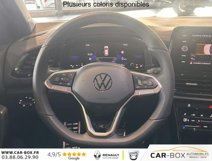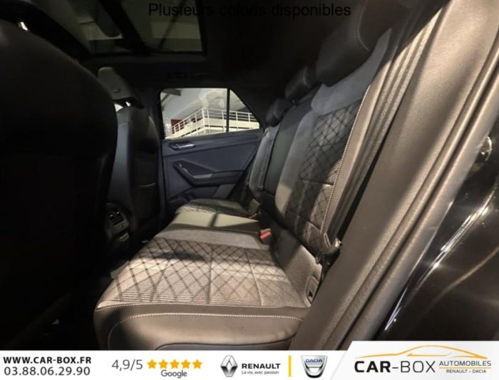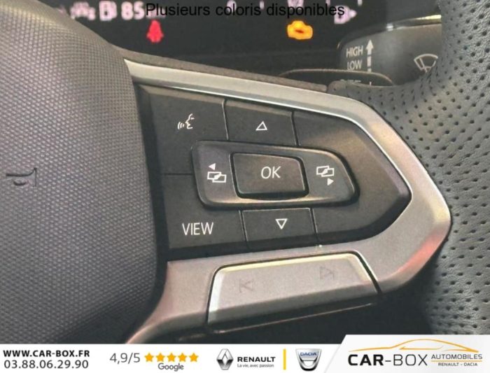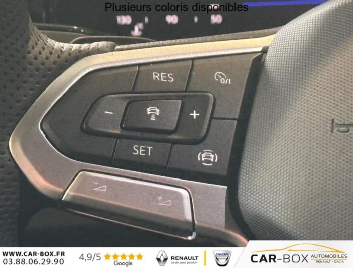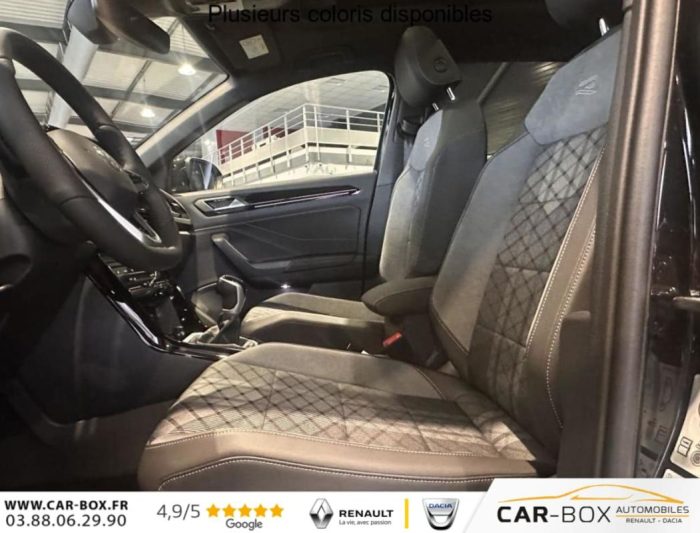 Rampes de pavillon anodisées, Fatigue Detection : système de détection de fatigue du conducteur qui analyse le comportement du conducteur et recommande un temps de repos par l'apparition d'un message visuel et sonore, Vitres AR et lunette AR surteintées à 65 %, 2 lampes de lecture à l'AV, Kit de dépannage : compresseur 12 V et produit d'étanchéité de pneu, Poignées de portes et rétroviseurs extérieurs dans la teinte de la carrosserie, Airbags latéraux AV, Direction progressive, Airbags rideaux AV/AR, Système Start/Stop avec récupération d'énergie au freinage, Oeillets d'arrimage ISOFIX (dispositif pour fixation de 2 sièges-enfants sur la banquette AR), Projecteurs antibrouillard AV avec éclairage statique d'intersection, Ciel de pavillon Noir, Sign Assist: Reconnaissance des panneaux de signalisation et affichage sur l'ordinateur de bord et l'écran du système de radionavigation, Sélection du profil de conduite, Châssis Sport: Direction progressive, Antidémarrage électronique, Catadioptres dans toutes les portières, Correcteur électronique de trajectoire ESP, système d'antiblocage de roues ABS, EDL, EDTC, antipatinage électronique ASR et stabilisation de la remorque, Pare chocs AV spécifique R-Line dans la couleur carrosserie, Pare chocs AR spécifiques R-Line dans la couleur carrosserie, Système d'infotainment avec écran d'accueil R-Line, Front Assist avec fonction de secours en ville et détecteur de piéton, Direction assistée, Réception de radio numérique DAB+, Logo R-Line sur la calandre et sur les ailes, Feux AR de brouillard des 2 côtés, feux de recul des 2 côtés, Frein de stationnement électromécanique avec fonction d'immobilisation en pente "Auto Hold" et assistant de démarrage en côte, Peinture unie Gris Ascot, Système de protection proactive des occupants avertisseur de non bouclage des ceintures de sécurité à l'AV et à l'AR, Appuis-tête AR (3) et ceintures de sécurité 3 points (3) sur la banquette AR, Caméra de recul "Rear View", Bas de caisse latéraux couleur carrosserie, Light Assist : Régulation automatique des feux de route, Lane Assist - Assistant au maintien dans la voie avec correction de trajectoire, Pédalier en acier inoxydable brossé, App-Connect sans fil - affichage et contrôle via l?écran tactile de la voiture, du contenu, des fonctions et des applications compatibles présents sur le Smartphone (compatibilité avec les systèmes Apple CarPlay, Apple CarPlay sans fil, Android Auto, Mirr, Aide au démarrage en côte "Hill-Hold", Tapis de sol AV/AR, Lampes de lecture AV/AR, Tableau de bord moussé, Travel Assist : Assistant de conduite semi-autonome, Système de détection de la signalisation routière, Climatisation automatique tactile Climatronic bi-zone avec filtre anti-allergène, réglable séparément pour le conducteur et le passager AV, Interface Bluetooth pour téléphone mains libres, Keyless Access: Système de verrouillage/dévérrouillage sans clé et démarrage avec bouton Start/Stop, Emergency Assist, Logo R-Line brodé sur les sièges AV, Palettes au volant, Digital Cockpit Pro : combiné d?instruments entièrement digital haute résolution couleur de 10,25", différents profils d?informations sélectionnables, 2 interfaces USB-C AV et 2 ports USB-C de recharge AR, ACC : Le Régulateur de vitesse adaptatif et prédictif avec limiteur de vitesse (ACC) adapte la vitesse en fonction des limitations de vitesse detectées et du parcours, Side Assist : assistance de changement de voie avec détecteurs d?angle mort, Vitres athermiques teintées vertes sur les côtés et à AR, Projecteurs à LED Plus : projecteurs LED haute performance avec feux de jour à LED feux de braquage et éclairage tous temps et réglage dynamique du site des projecteurs, Application décorative de tableau de bord "Piano Noir" brillante, Jantes en alliage léger 18" Nevada noires, Plancher de coffre à bagages réglable en hauteur et amovible, Volant sport multifonction à touches ?physiques? en cuir et logo R-Line et capacitif, Partie extérieure et appuie-tête bi-matière ArtVelours et surpiqués en Gris, Sellerie spécifique avec partie centrale en tissu "Karoso", intérieur des bourrelets latéraux en Art Velours, Accoudoirs de porte et accoudoir central en ArtVelours, Insert argent sur le haut des vitres, allant des portières AV jusqu'à l'AR du véhicule, Préparation pour "VW Connect" vous permet d?obtenir des informations sur votre véhicule directement sur votre smartphone. Application totalement gratuite et facile à utiliser. Produit 100% compatible avec votre Volkswagen et garantie constructeur préservé, Rétroviseurs extérieurs électriques avec fonction mémoire et rabattables électriquement, Park Assist - assistant aux manoeuvres de stationnement y compris système d?aide au stationnement avec signaux d?avertissement en cas d?obstacles à l?AV et à l?AR, Pack Visibilité : Allumage automatique des feux avec fonctions "Coming Home - Leaving Home" Capteur de pluie avec essuie-glace automatique Rétroviseur intérieur jour/nuit automatique , Chargeur de téléphone par induction compartiment de rangement spécifique au téléphone dans la console centrale, Essuie-glaces AV et AR avec commande d?intermittence, Contrôle de la traction (TCS), Boîte de vitesse automatique (DSG7), Sièges AV réglables en hauteur, Verrouillage central, Alerte de perte de pression des pneus, Airbags frontaux conducteur et passager AV, Contrôle de la pression des pneus, Siège passager AV rabattable, Diffuseur AR noir, Seuils de porte avec logo R-Line