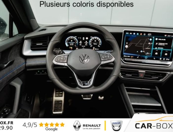 Hors frais de dossier2.0 TDI 150CH DSG7 7PL R-LINE, diesel, gris, 30/06/2025, Allumage automatique des projecteurs avec feux de jour à LED et fonction, Assistant aux manoeuvres de stationnement, Avertissement de sortie de véhicule: lorsque le conducteur veut sortir du véhicule mais qu’un cycliste ou véhicule s’approche par derrière, le conducteur est averti (le témoin d’aide au changement de voie s’allume sur le rétroviseur, un signal sonore est, Climatisation automatique, Drive Experience Control: Sélecteur de profil de conduite avec écran OLED tactile – Permet d’ajuster le volume, le profil de conduite ainsi que les, Ecran tactile 12, 9, Interface téléphonique, Sellerie en Tissu et Microfleece, Système Audio & Infotainment, Système de fermeture et de démarrage sans clé, Système Navigation & Infotainment, Tableau de bord Digital Cockpit 10, Toit ouvrant panoramique : option incluse (valeur : 1 410 Eur TTC), Seuils de portes AV en aluminium, ABS, Extension de garantie 5 ans (2 ans + 3 ans supplémentaires) ou 150000 kms : option incluse (valeur : 2 250 Eur TTC), Accoudoir central AV, Caméra de recul, Détecteur de fatigue, Interface Bluetooth pour portable, Ciel de pavillon Noir Titane, Rétroviseur intérieur à réglage jour/nuit automatique, Radars de stationnement AV/AR, Détecteur de pluie, Direction assistée, Boîtiers de rétroviseurs extérieurs et poignées de porte dans la teinte du véhicule, ESP, Peinture métallisée : option incluse (valeur : 800 Eur TTC), Rétroviseurs extérieurs rabattables électriquement, Service d’appel d’urgence e-Call, Assistant au démarrage en côte, Airbags de tête pour passagers AV/AR, Réception de radio numérique (DAB+), Régulateur de vitesse adaptatif ACC avec limiteur de vitesse, Light Assist: Activation ou désactivation automatique des feux de route en fonction des sources lumineuses en présence (dès 60 km/h), Pack R-Line extérieur, App-Connect sans fil – affichage et contrôle via l?écran tactile de la voiture, du contenu, des fonctions et des applications compatibles présents sur le Smartphone (compatibilité avec les systèmes Apple CarPlay, Apple CarPlay sans fil, Android Auto, Mirr, Assistant de maintien sur la voie Lane Assist, Assistant de freinage d’urgence Front Assist avec système de détection des piétons et cyclistes, Ecrous antivol avec protection antivol étendue, Dispositif start/stop, Frein de stationnement électronique y compris fonction Auto Hold, Système de détection de la signalisation routière, Rétroviseurs extérieurs réglables électriquement et dégivrants, Eclairage périmétrique avec projection de logo, Système de contrôle de l’état des pneus, Appuie-tête à sécurité optimisée AV, Crochet d’attelage escamotable avec déverrouillage électrique et assistant de stationnement avec remorque Trailer Assist : option incluse (valeur : 1 260 Eur TTC), Projecteurs IQ.LIGHT HD – Matrix LED: Eclairage à technologie LED avec adaptation dynamique du faisceau lumineux en fonction des sources lumineuses en présence – Projecteurs AV matriciels à LED avec feux de jour à LED et clignotants défilants – Feux A : option incluse (valeur : 680 Eur TTC), Pack d’aides à la conduite "IQ.DRIVE" : Assistant de conduite semi-autonome "Travel Assist" Caméra ŽArea View:Ž Contrôlez votre environnement à 360° et les obstacles grâce à ses 4 caméras dont les images sont diffusées en temps réel sur votre système d’infotainment Système de protection proactive des occupants (fermeture automatique des vitres et du toit ouvrant et resserrage des ceintures en cas de détection d?un danger imminent) : option incluse (valeur : 1 030 Eur TTC), Jantes en alliage léger 20" "Leeds" 8Jx20", pneus auto-colmatants 255/40 R20 : option incluse (valeur : 720 Eur TTC), Banquette AR coulissante et dossier divisés, rabattables, Bandeau lumineux AV/AR avec logo Volkswagen rétroéclairé, Alarme antivol avec protection volumétrique, Airbags rideaux et latéraux AV/AR, airbag central, Oeillets de retenue ISOFIX pour sièges pour enfants sur sièges AR extérieurs et sur siège passager AV, compatibles i-Size, Prise 12V dans le coffre à bagages, Driving Experience Control: réglage du volume et sélection du profil de conduite, 2 prises de chargement USB-C dans la console centrale AR, capacité de charge jusqu’à 45W, Appui lombaire, réglage pneumatique des 2 côtés, Déverrouillage à distance pour le dossier de banquette AR, Commande vocale IDA, Suppression siège passager rabattable, Feux de braquage et éclairage tous temps, Blocs de feux AR à LED 3D, Hayon à ouverture pilotée par capteurs et fermeture électrique différée, avec déverrouillage à distance, Plancher de coffre, Sièges AV Sport avec appuie-tête intégré, Roue de secours allégée et compacte : option incluse (valeur : 120 Eur TTC), Tapis de sol en textile, Vitres acoustiques et surteintées AR : option incluse (valeur : 680 Eur TTC), Assistant d’intersection: système de surveillance périmétrique des intersections. Ce système freine automatiquement le véhicule en cas d’urgence lors d’une intersection, Contrôle de la pression des pneus : option incluse (valeur : 210 Eur TTC), Pack Design "Black R-Line" : Calandre noire Contours des vitres noirs Coques de rétroviseurs extérieurs Noires Rampes de pavillon noires Vitres acoustiques et surteintées AR : option incluse (valeur : 915 Eur TTC), Pack Hiver : Sièges AV chauffants Volant chauffant : option incluse (valeur : 560 Eur TTC), Airbag conducteur et passager AV avec désactivation de l’airbag du passager AV, Technologie Car2X: peut communiquer avec d’autres véhicules par Wi-Fi p. (autres usagers de la route, véhicules de chantier ou dépannage) pour avertir le conducteur et transmettre ces avertissements à d’autres véhicules équipés de la fonction Car2X, Volant sport multifonction en cuir, avec palettes, Miroirs de court