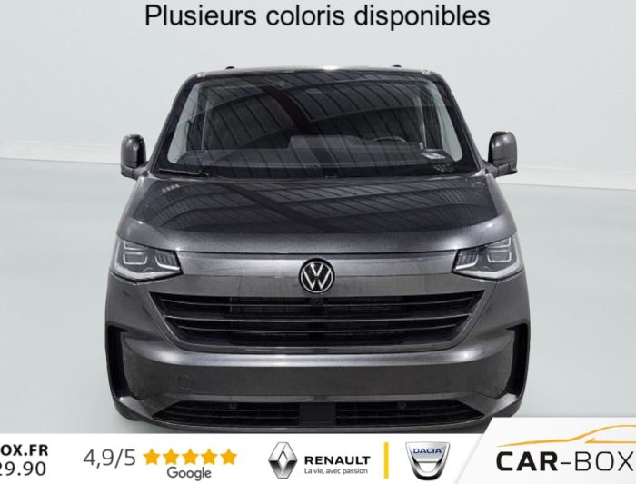 caméra 360°, jantes alliages 17 " le mans " noir, ABS - système antiblocage, Rétroviseurs extérieur rabattables, réglables et dégivrants électriquement : option incluse (valeur : 160 Eur TTC), Protection centrale de roue, Banquette 3pl en 2ème rangée, Direction assistée, ESP programme électronique de stabilisation, Volant multifonction cuir, Digital Cockpit, Airbags pour conducteur et passager AV avec désactivation de l'airbag du passager AV, Glaces latérales en verre athermique, Peinture métallisée : option incluse (valeur : 1 140 Eur TTC), Essuie-glace automatique avec détecteur de pluie, Système d'appel d'urgence - eCall, Système de contrôle de la pression des pneus (mesure directe), Verrouillage centralisé avec système de fermeture et de démarrage sans clé Keyless Access sans SAFELOCK : option incluse (valeur : 280 Eur TTC), Pack équipement extérieur pièces rapportées peintes, grille de calandre et pare-chocs dans la teinte du véhicule - Boîtiers de rétroviseur extérieur et poignées de porte dans la teinte du véhicule - Pare-chocs AV et AR dans la teinte du véhicule - Toit : Boitiers de rétroviseur extérieur et poignées de porte dans la teinte du véhicule Pare-chocs AV et AR dans la teinte du véhicule Toit dans la teinte du véhicule : option incluse (valeur : 737 Eur TTC), Préparation de l?attelage de remorque, Garnitures de siège en tissu à rayures, Pack Siège cabine 13 : Appuie-tête 4 directions, réglables en hauteur et en inclinaison Chauffage de siège dans la cabine, réglable séparément Garnitures de siège en tissu à rayures Sièges de cabine : option incluse (valeur : 584 Eur TTC), 6 oeillets d?arrimage pour fixation de la charge dans le compartiment de charge, Boîte à gants avec volet fermant à clé : option incluse (valeur : 35 Eur TTC), IQ.LIGHT - projecteurs à LED avec fonction Matrix ainsi que fonctions Coming Home et Leaving Home : option incluse (valeur : 1 427 Eur TTC), Porte coulissante côté conducteur et passager AV : option incluse (valeur : 798 Eur TTC), Climatiseur dans la cabine (2 zone avec réglage auto) : option incluse (valeur : 439 Eur TTC), Volant multifonction en similicuir : option incluse (valeur : 167 Eur TTC), Système de climatisation monozone avec commande manuelle dans la cabine, Poignée d'accès côté passager AV sur le montant A, Pack Aide à la conduite Plus Assistance au freinage d'urgence autonome avec détection des piétons et des cyclistes, avec assistant d'évitement et assistant de braquage Caméra de recul Sans assistant aux manoeuvres de stationnement Système d'aide au stationnement l?AV et à l?AR : option incluse (valeur : 810 Eur TTC), Régulateur de distance avec stop & go avec régulateur de vitesse et assistant de vitesse intelligent : option incluse (valeur : 445 Eur TTC), Préparé pour VW Connect, Roue d'urgence 155/70 R17 et cric : option incluse (valeur : 0 Eur TTC), Assistant de maintien de voie Lane Assist, Blocs de feux AR à LED, Poignées de maintien sur le cadre de toit côté conducteur et passager AV, Projecteurs à LED y compris feux de jour à LED, Verrouillage centralisé sans SAFELOCK, Régulateur de vitesse avec limiteur de vitesse prédictif, Régulation des feux de route Light Assist, Bavettes pare-boue à l?AV, Pare-brise en verre de sécurité feuilleté, isolant, Porte coulissante côté passager AV, 2 lampes à LED dans le pavillon du compartiment de charge, Boîte à gants avec volet, Console centrale, avec porte gobelets et rangement pour téléphone mobile, Cloison en métal, haute, Console de pavillon, Enjoliveur de seuil de porte coulissante en plastique, noir, Lampes à LED pour la cabine, Revêtement latéral en plastique dans le compartiment de charge, demi-haut, Vitres électriques à l?AV et à l?AR, Autoradio à écran tactile couleur de 33 cm (13) et App-Connect sans fil (Apple et Android), 4 HP (2 HP dans le tableau de bord et 2 HP dans les portes de la cabine), Détection de signalisation routière et avertissement de circulation à contresens : option incluse (valeur : 112 Eur TTC), Pack Aide à la conduite Assistance au freinage d'urgence autonome avec système de détection des piétons et des cyslistes, assistant dŽintersense et de braquage étendu, assistant d'évitement Caméra de recul avec l?assistant de changement de voie Sans assistant aux manoeuvres de stationnement Système d'aide au stationnement AV/AR avec fonction de freinage en manoeuvre : option incluse (valeur : 904 Eur TTC), Assistant de changement de voie Side Assist avec avertissement d'ouverture porte et centrage dans la voie : option incluse (valeur : 678 Eur TTC), Pack Aide à la conduite Assistance au freinage d?urgence, détection des piétons et cyclistes, assistant d'évitement et de braquage, Système d'aide au stationnement AR : Assistance au freinage d'urgence autonome avec détection des piétons et des cyclistes, avec assistant d'évitement et assistant de braquage Système d'aide au stationnement AR , 2x prises de recharge/données USB 15 W dans la console centrale du tableau de bord, 1x USB-C, 1x USB-A, Pack Extérieur Boîtiers de rétroviseur extérieur et poignées de porte noir grainé, Pare-chocs AV et AR noir, grainé, Toit dans la teinte du véhicule : Boitiers de rétroviseur extérieur et poignées de porte noir grainé Pare-chocs AV et AR noir, grainé Toit dans la teinte du véhicule , Roue de secours en acier avec pneu normal, Bloc de feux AR à LED avec signature lumineuse exclusive : option incluse (valeur : 120 Eur TTC), Frein de stationnement électrique, Rétroviseurs extérieurs réglables et dégivrants électriquement, rabattables manuellement, 2 sièges individuels dans la 1ère rangée de sièges (siège conducteur + siège passager), Portes battantes, avec revêtement en panneaux en plastique, Réservoir à carburant avec une contenance de 70 l : option incluse (valeur : 54 Eur TTC), Anti-démarrage électronique, Avertisseur s