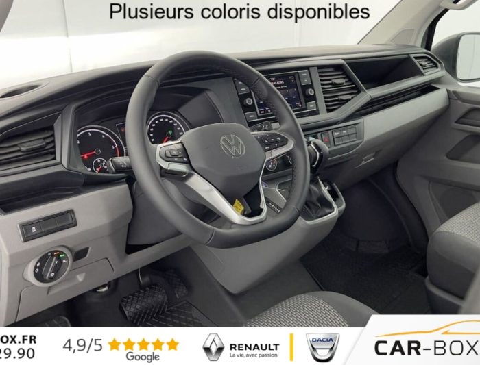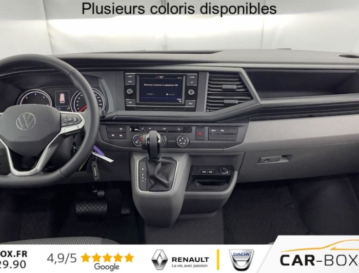 Hors frais de dossierT6.1 PROCAB L1 2.0 TDI 150ch Business Plus DSG7, diesel, gris métallisé, 03/12/2024, Assistant de maintien de voie Lane Assist : : option incluse (valeur : 804 Eur TTC), Assistant feux de route : : option incluse (valeur : 180 Eur TTC), Banquette 3 places avec rangement en partie basse (avec fixation ISOFIX), Calandre avec deux barres chromées, Caméra de recul "Rear View" : : option incluse (valeur : 354 Eur TTC), Climatisation “Climatic” (semi-automatique), Cloison de séparation haute avec vitrage en plastique de sécurité, Composition Colour” avec Bluetooth intégré et écran tactile 6, 5′, Écrous de sécurité : : option incluse (valeur : 60 Eur TTC), Interface électrique et calculateur multifonction pour utilisation externe : : option incluse (valeur : 588 Eur TTC), Interface pour téléphone mobile "Comfort" avec fonction de charge inductive : : option incluse (valeur : 450 Eur TTC), Jantes en alliage léger "Woodstock" 17 en Noir : : option incluse (valeur : 2 436 Eur TTC), Ordinateur de bord premium : : option incluse (valeur : 174 Eur TTC), Pack acoustique standard : : option incluse (valeur : 150 Eur TTC), Pare-brise en verre feuillete, dégivrant et athermique : : option incluse (valeur : 270 Eur TTC), Pare-chocs (plastique) peint dans la teinte du véhicule, ParkPilot, radar de recul à l’arrière, Peinture métallisée : : option incluse (valeur : 970 Eur TTC), Phares antibrouillard avec éclairage statique d’intersection, Poids total autorisé en charge 3 000 kg : : option incluse (valeur : 954 Eur TTC), Porte coulissante à droite vitrée, Porte coulissante à gauche : : option incluse (valeur : 948 Eur TTC), Portes arrière battantes tôlées, Projecteurs à LED avec éclairage de jour à LED : : option incluse (valeur : 1 392 Eur TTC), Protection latérale mi-hauteur dans l’espace de chargement, Rails de fixation sur le toit (préparation pour (galerie porte-bagages coulissante) : : option incluse (valeur : 174 Eur TTC), Régénération forcée du filtre à particules : : option incluse (valeur : 636 Eur TTC), Régulateur de vitesse automatique ACC avec freinage d’urgence front assist : : option incluse (valeur : 876 Eur TTC), Régulateur et limiteur de vitesse, Rétroviseurs extérieur réglables, dégivrants et rabattables électriquement : : option incluse (valeur : 198 Eur TTC), Revêtement caoutchouc lavable, Roue de secours (acier) avec pneu normal, Service d’appel d’urgence eCall, Siège conducteur CONFORT avec réglage en hauteur, lombaires et accoudoir, Siège conducteur et passager confort : : option incluse (valeur : 264 Eur TTC), Sièges AV chauffants : : option incluse (valeur : 516 Eur TTC), Système d’aide au stationnement à l’avant et à l’arrière : : option incluse (valeur : 342 Eur TTC), Tapis en caoutchouc dans la cabine, Vitre coulissante à gauche : : option incluse (valeur : 624 Eur TTC), Vitre coulissante avant et panneau latéral fermé à l’arrière, dans le compartiment passagers/charge, à droite : : option incluse (valeur : 624 Eur TTC), Vitres latérales avant en verre athermique, glaces latérales arrière et lunette arrière assombries : : option incluse (valeur : 486 Eur TTC), Volant cuir multifonction (3 branches), Volume du réservoir à carburant de 80 l : : option incluse (valeur : 90 Eur TTC)