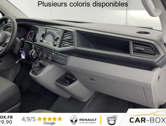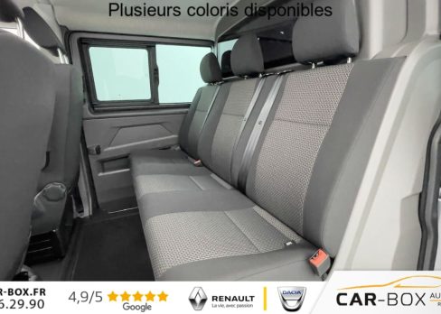 Assistant de maintien de voie Lane Assist : : option incluse (valeur : 804 Eur TTC), Assistant feux de route : : option incluse (valeur : 180 Eur TTC), Banquette 3 places avec rangement en partie basse (avec fixation ISOFIX), Calandre avec deux barres chromées, Caméra de recul "Rear View" : : option incluse (valeur : 354 Eur TTC), Climatisation “Climatic” (semi-automatique), Cloison de séparation haute avec vitrage en plastique de sécurité, Composition Colour” avec Bluetooth intégré et écran tactile 6,5', Écrous de sécurité : : option incluse (valeur : 60 Eur TTC), Interface électrique et calculateur multifonction pour utilisation externe : : option incluse (valeur : 588 Eur TTC), Interface pour téléphone mobile "Comfort" avec fonction de charge inductive : : option incluse (valeur : 450 Eur TTC), Jantes en alliage léger "Woodstock" 17 en Noir : : option incluse (valeur : 2 436 Eur TTC), Ordinateur de bord premium : : option incluse (valeur : 174 Eur TTC), Pack acoustique standard : : option incluse (valeur : 150 Eur TTC), Pare-brise en verre feuillete, dégivrant et athermique : : option incluse (valeur : 270 Eur TTC), Pare-chocs (plastique) peint dans la teinte du véhicule, ParkPilot, radar de recul à l'arrière, Peinture métallisée : : option incluse (valeur : 970 Eur TTC), Phares antibrouillard avec éclairage statique d'intersection, Poids total autorisé en charge 3 000 kg : : option incluse (valeur : 954 Eur TTC), Porte coulissante à droite vitrée, Porte coulissante à gauche : : option incluse (valeur : 948 Eur TTC), Portes arrière battantes tôlées, Projecteurs à LED avec éclairage de jour à LED : : option incluse (valeur : 1 392 Eur TTC), Protection latérale mi-hauteur dans l'espace de chargement, Rails de fixation sur le toit (préparation pour (galerie porte-bagages coulissante) : : option incluse (valeur : 174 Eur TTC), Régénération forcée du filtre à particules : : option incluse (valeur : 636 Eur TTC), Régulateur de vitesse automatique ACC avec freinage d'urgence front assist : : option incluse (valeur : 876 Eur TTC), Régulateur et limiteur de vitesse, Rétroviseurs extérieur réglables, dégivrants et rabattables électriquement : : option incluse (valeur : 198 Eur TTC), Revêtement caoutchouc lavable, Roue de secours (acier) avec pneu normal, Service d'appel d'urgence eCall, Siège conducteur CONFORT avec réglage en hauteur, lombaires et accoudoir, Siège conducteur et passager confort : : option incluse (valeur : 264 Eur TTC), Sièges AV chauffants : : option incluse (valeur : 516 Eur TTC), Système d'aide au stationnement à l'avant et à l'arrière : : option incluse (valeur : 342 Eur TTC), Tapis en caoutchouc dans la cabine, Vitre coulissante à gauche : : option incluse (valeur : 624 Eur TTC), Vitre coulissante avant et panneau latéral fermé à l'arrière, dans le compartiment passagers/charge, à droite : : option incluse (valeur : 624 Eur TTC), Vitres latérales avant en verre athermique, glaces latérales arrière et lunette arrière assombries : : option incluse (valeur : 486 Eur TTC), Volant cuir multifonction (3 branches), Volume du réservoir à carburant de 80 l : : option incluse (valeur : 90 Eur TTC)