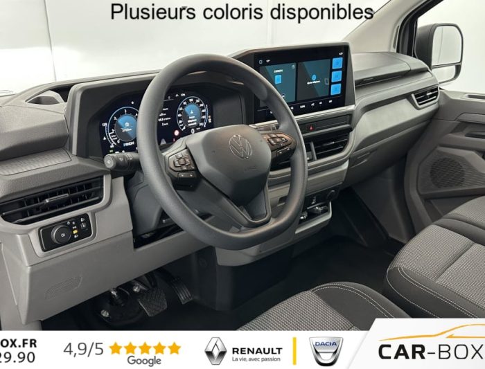 Hors frais de dossierT7 Van L1 2.0 TDI 150ch Business BVA8, diesel, gris, 07/10/2025, Appui lombaire pour le siège du conducteur, Assistance au freinage d’urgence, détection des piétons et cyclistes, Assistant de maintien de voie Lane Assist, Autoradio à écran tactile couleur de 133 et App-Connect sans fil (Apple et Android), Banquette double pour passagers avec trappe de chargement, Bavette pare-boue à l’avant et à l’arrière : option incluse (valeur : 85 Eur TTC), Bavettes pare-boue à l’avant, Blocs de feux arrière à LED, Boîtiers de rétroviseur extérieur et poignées de porte noir grainé, Cloison en métal, haute, Détection de signalisation routière, Digital Cockpit, Dispositif d’attelage, rigide (y compris système de stabilisation de la remorque) : option incluse (valeur : 396 Eur TTC), Essuie-glaces automatiques avec détecteur de pluie, Frein de stationnement électrique, Garniture de siège en tissus à rayures, Kit de crevaison (compresseur 12 volts et produit de colmatage des pneus) : option incluse (valeur : 0 Eur TTC), Lampes à LED dans le pavillon du compartiment de charge, Oeillets d’arrimage pour fixation de la charge dans le compartiment de charge, Pack Aide à la conduite Plus : option incluse (valeur : 684 Eur TTC), Pack Siège cabine 18A, Pare-chocs avant et arrière en Noir, Poignées de maintien sur le cadre de toit côté conducteur et passager avant, Porte coulissante côté passager, Projecteurs à LED y compris feux de jour à LED, Régulateur de vitesse avec limiteur de vitesse, Régulation des feux de route Light Assist, Rétroviseurs extérieurs réglables et dégivrants électriquement, Revêtement latéral en plastique dans le compartiment de charge, demi-haut, Revêtement latéral en plastique dans le compartiment de charge, haut : option incluse (valeur : 102 Eur TTC), Système d’aide au stationnement arrière, Système d’appel d’urgence eCall, Système de climatisation monozone avec commande manuelle, Volant multifonction
