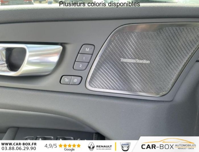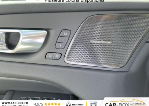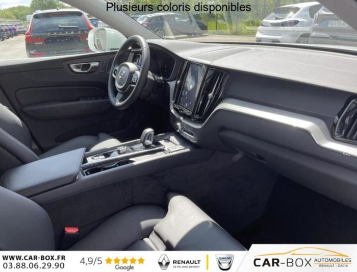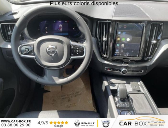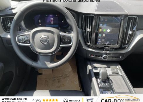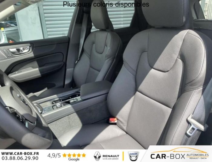 Détecteur d'humidité, Feux de freinage d'urgence, Feux AR à LED, Allumage automatique des feux, Système de récupération de l'énergie au freinage, Fonction Stop&Start : coupe et redémarre le moteur lorsque la voiture est à l'arrêt (déconnectable), Volant chauffant, Airbags latéraux conducteur et passager ( SIPS-BAG ), Sièges AV chauffants (3 niveaux d'intensité), Sièges AR chauffants (3 niveaux d'intensité), Assistance au démarrage en côte, Porte-ticket de parking et d'autoroute, Correcteur électronique de trajectoire ESC, Direction assistée électrique asservie à la vitesse, Feux de jour, Incrustations Aluminium Maillé, Freinage automatique post-collision (réduction du risque de suraccident), Système de contrôle du freinage du véhicule VDC, Système de contrôle de la stabilité et de la traction STC, Airbag genoux conducteur, Trappe de carburant intélligente sans bouchon, 4 points d'ancrage dans les panneaux latéraux du compartiment à bagages, Commande vocale avancée (climatisation, médias, téléphone, eManuel utilisateur et navigation), Seuil de coffre en Aluminium, Fonction climatisation de l'habitacle moteur coupé, Port de recharge sur l'aile AV gauche, Inserts Noir Laqué sur le bouclier AV et AR, Hayon électrique, Alerte vigilance conducteur, Limiteur et régulateur de vitesse, Système de protection anti-sortie de route, Reconnaissance des panneaux de signalisation, Phares directionnels Full LED avec correcteur dynamique de la portée, lave-phares à haute pression escamotables, feux de route actifs et feux de jour design marteau de thor, Siège passager AV à réglages électriques, Sellerie Cuir avec Sièges confort, Accès au service d'urgence Volvo via bouton SOS dans le plafonnier, Vitres teintées à 25 %, Commandes audio au volant, Alerte franchissement de ligne active, Airbags rideaux, Airbag passager désactivable avec témoin d'indication (on/off), Préparation pour le système Isofix (places latérales de la 2ème rangée de sièges), Trousse de 1er secours et triangle de présignalisation, Climatisation automatique bi-zone Inclut un système de recirculation de l?air et un filtre à pollen, Connexion Bluetooth, Dossier rabattable 60/40, Siège conducteur à réglages électriques et à mémoire, Siège passager avec fonction mémoire, Système audio Volvo Harman Kardon Premium Sound, Accoudoir central AV avec porte-gobelets, Frein de parking électronique automatique, Télécommande de verrouillage centralisé avec clé de contact integrée, fermeture automatique des vitres et du toit ouvrant, fonction panique (déclenchement du klaxon et des feux de détresse), Seuils de porte en Aluminium à l'AV badgés Volvo, Supports lombaires des sièges AV réglables électriquement (4 positions), Assise des sièges AV extensible (électriquement si le siège dispose des réglages électriques), Ceintures de sécurité à inertie à 3 points d'ancrage tous les sièges, Détecteur de pluie, Rétroviseurs extérieurs rabattables électriquement, Coques de rétroviseurs Noir Laqué, Rails de toit couleur Noir Laqué, Rétroviseurs intérieur sans contour et extérieurs électrochromes, Sécurité connectée Alerte Feux de détresse et Chaussée glissante (nécessite une connexion Internet), Miroirs de courtoisie éclairés, spots de lecture à l'AV, éclairage aux pieds à l'AV, dans la boîte à gants et le coffre, éclairage intérieur temporisé, Pack Visibilté : Phares directionnels Full LED avec correcteur dynamique de la portée, lave-phares à haute pression escamotables, feux de route actifs et feux de jour design marteau de thor , Combiné d'instruments digital 12,3" nouvelle génération, Infotainment Google Android Services Google (comprend Google Maps, Google Assistant, Google Play Store, chargeur smartphone par induction et un volume de données illimité pour les 4 premières années) et Kit mains libres Bluetooth et Streaming Audio, mode, Châssis Dynamique, Planche de bord gainée de simili-cuir, Seuils de portes en Aluminium à l'AV badgés Recharge, Filet de protection coffre/habitacle, Bouclier AV et diffuseur AR spécifiques avec inserts Noir Laqué, Pommeau de levier de vitesse gainé de Simili-Cuir, IntelliSafe Surround Surveillance anti-angle mort, Assistance au changement de file, Alerte trafic en marche arrière et Alerte collision arrière avec action corrective sur la direction, IntelliSafe Assist Régulateur adaptatif de vitesse et de distance ACC, Assistance à la conduite intelligente, Alerte distance de sécurité, Système d?assistance à l?arrêt d?urgence, Pack éclairage : Eclairage aux pieds à l'AR Eclairage d'ambiance AV et AR Eclairage dans les contres-portes Eclairage des poignées de portes intérieures AV et AR Eclairage des porte-gobelets AV Eclairage du sol dans les portières AR et le hayon Spots de lecture à l'AR , City Safety (ou Safety Assistance) Système d?anticipation de collision intelligent, Alerte Distraction Trafic (Ready to drive notification), Rappels de clignotants à LED intégrés aux rétroviseurs extérieurs, Pare-chocs AV couleur carrosserie avec inserts chromés, Pavillon de toit coloris Beige, Ecran central tactile multimédia haute résolution 9" personnalisable, nouvelle génération, 2 prises USB type-C, Mise à jour du système à distance (Over The Air ou OTA), Ouverture des portes sans clé Keyless Entry incluant éclairage du sol dans les poignées de porte AV et ouverture Confort du hayon électrique (sans les mains), Calandre spécifique avec incrustations et contour Noir Laqué, Pare-chocs AR avec sorties d?échappement dissimulées, Contour des vitres latérales Noir laqué, Système de pré-conditionnement de l'habitacle (chauffage et climatisation), Câble de recharge de 4,5 mètres avec LED d'indication de charge, Chargeur de téléphone par induction, Ordinateur de bord, One Pedal Drive ou Conduite à une pédale Fonction permettant au conducteur de contrôler à la f